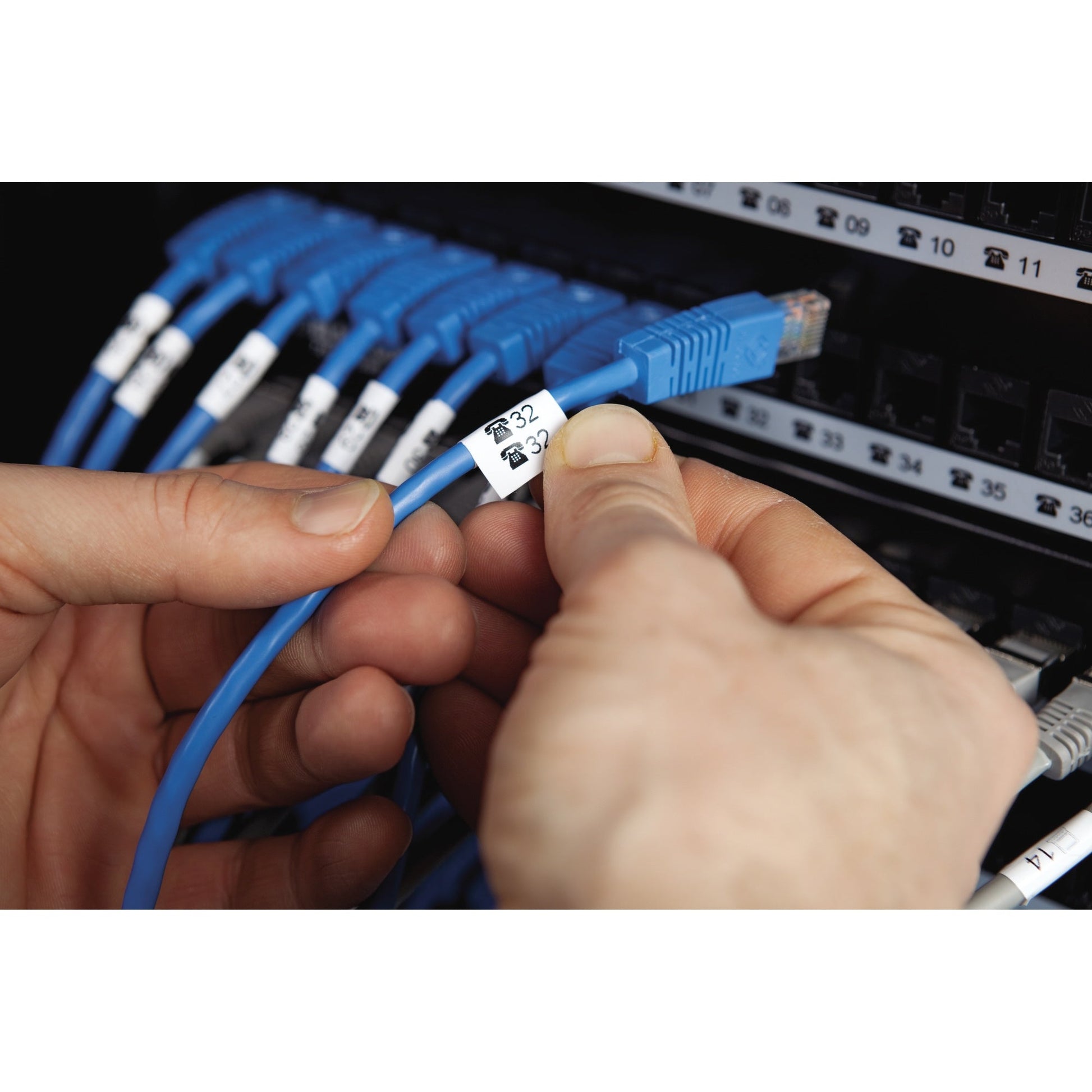 schwarzFür die Beschriftung von Drähten, Kabeln und sonstigen gewölbten Oberflächen. Flexible Nylon-Schriftbänder erfüllen die Normen und haften überzeugend auf Drähten, Kabeln, unebenen und rauen Oberflächen. Reißfeste Materialien werden beim Ziehen durch enge Stellen oder Kabelkanäle nicht beschädigt. Der Industrieklebstoff ist resistent gegen Feuchtigkeit, extreme Temperaturen, UV-Strahlung und vieles mehr, sodass sich die Schriftbänder weder einrollen noch ablösen. Thermotransferdrucktechnik - Schriftbänder verschmieren nicht und bleichen nicht aus. Durch die Rückseitenschlitzung der Schutzfolie lassen sich die Schriftbänder schnell und unkompliziert anbringen.