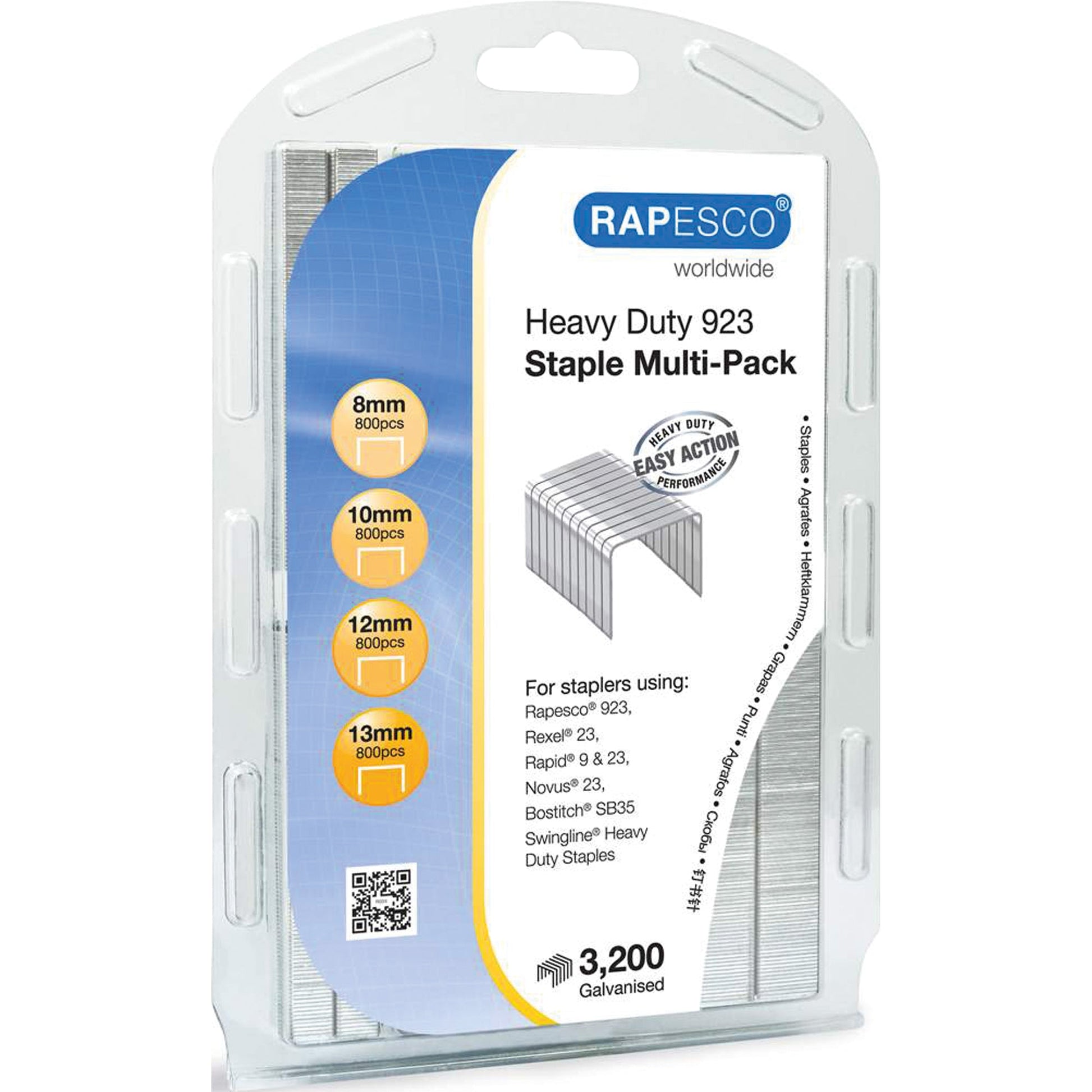 Bezeichnung: RAPESCO Heftklammer Multi-Pack 923/8, 923/10, 923/12, 923/13 Rapesco® 923, Rexel® 23, Rapid® 9, -23, Novus® 23, Bostitch® SB35, Swingline® Heavy Duty Staples 4 x 800 St./Pack.