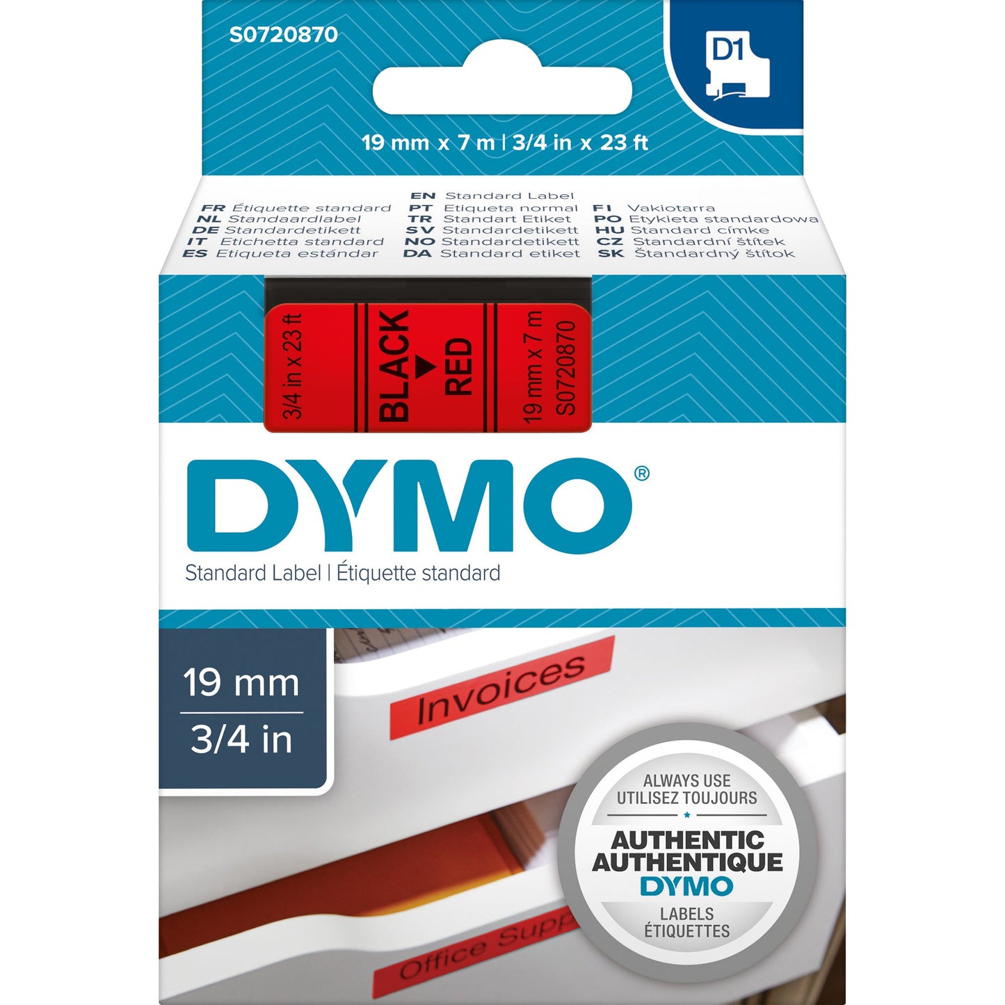 Bezeichnung: DYMO® Schriftbandkassette 19 mm x 7 m (B x L) rot schwarz