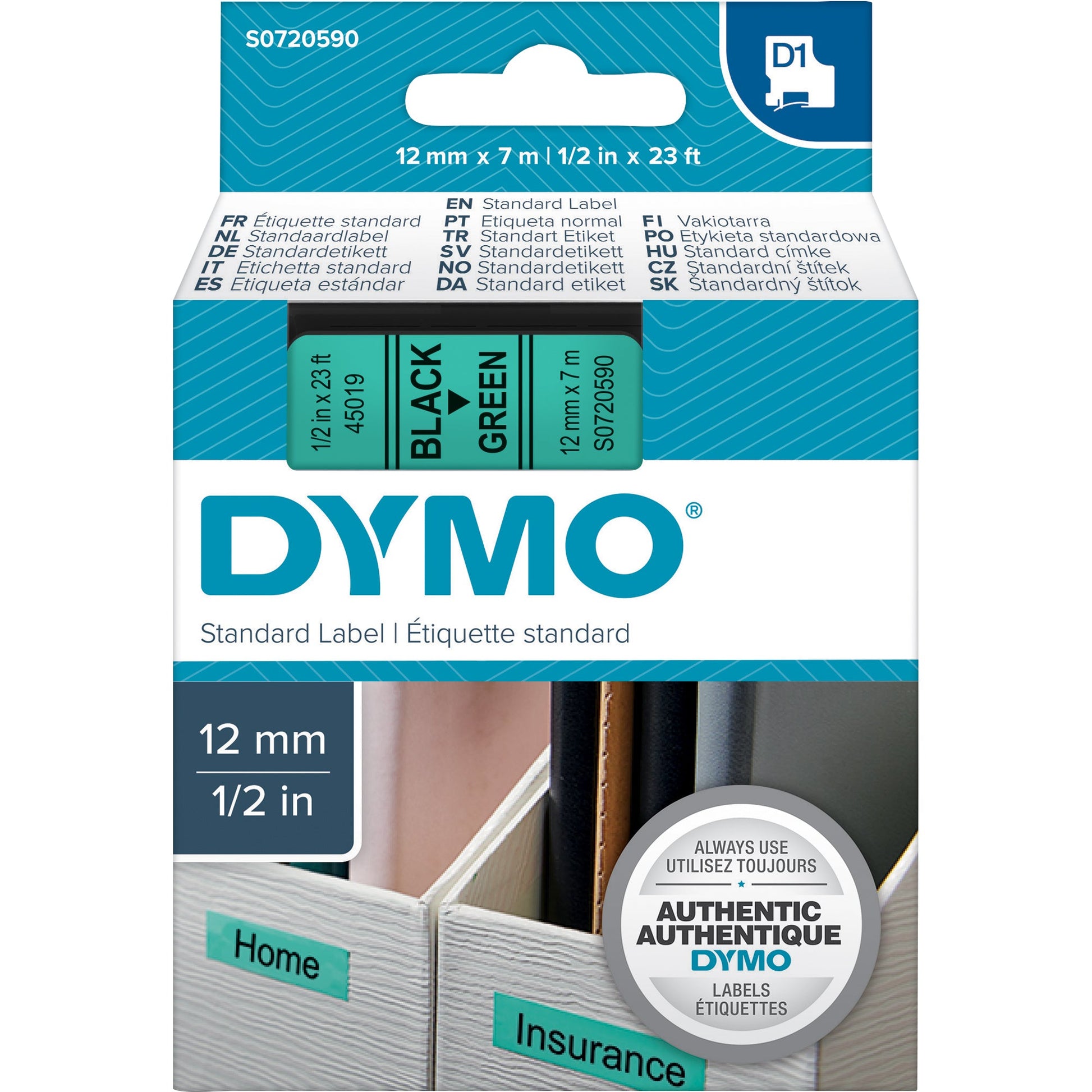 Bezeichnung: DYMO® Schriftbandkassette 12 mm x 7 m (B x L) grün schwarz