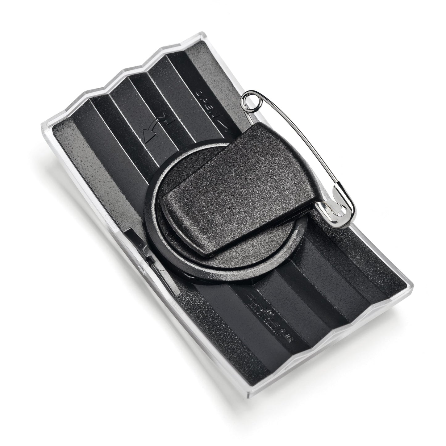 Bezeichnung: DURABLE Namensschild KONVEX 75 x 40 mm (B x H) drehbare Kombiklemme transparent 25 St./Pack.