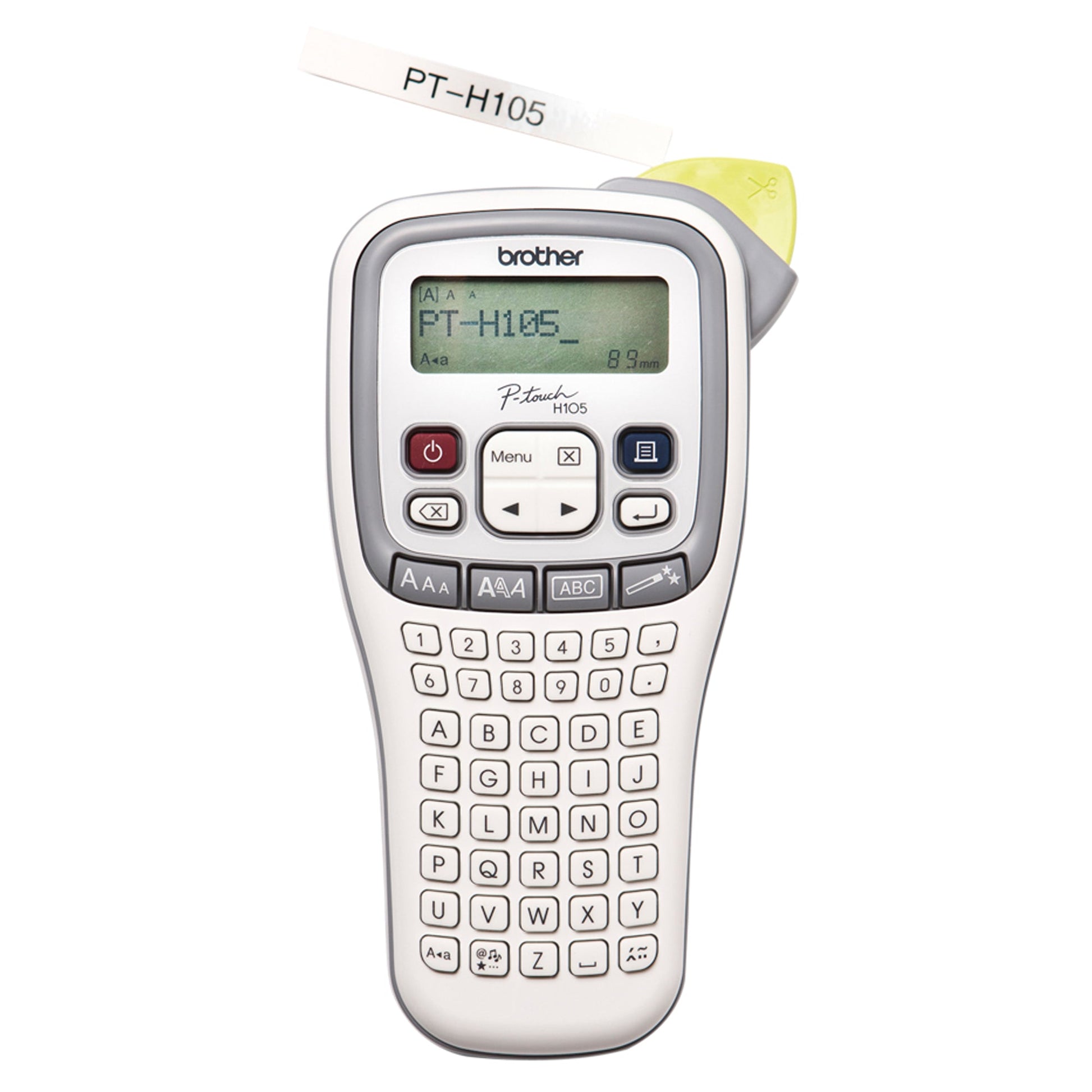 Bezeichnung: Brother Beschriftungsgerät PT-H105 1 Display-Zeile 3 Schriftgrößen 2 Druckzeilen inkl. TZe-Schriftbandkassette (12 mm x 4 m, schwarz auf weiß)