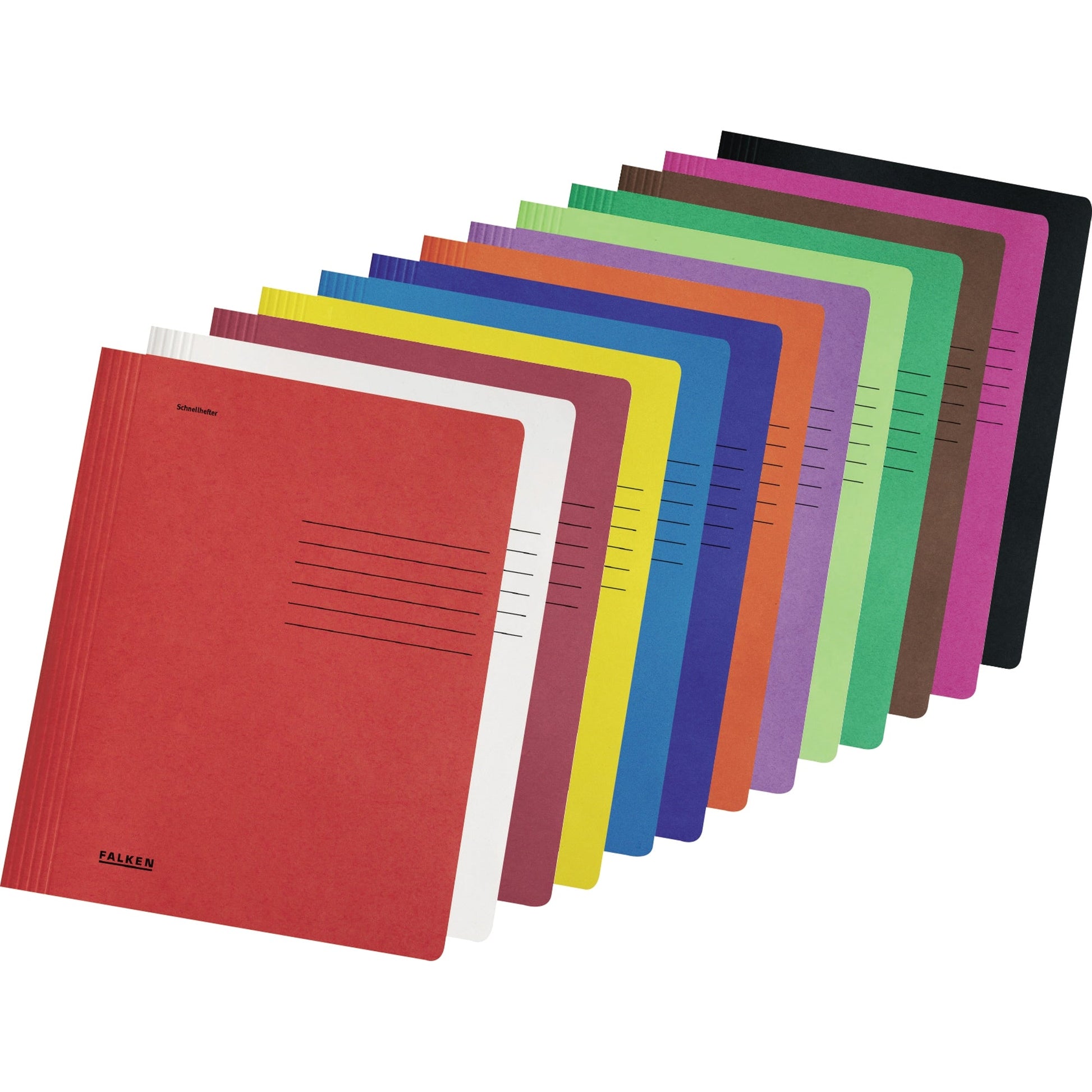 rotGebrauchsfertig gefaltete Schnellhefter in Intensivfarben.
