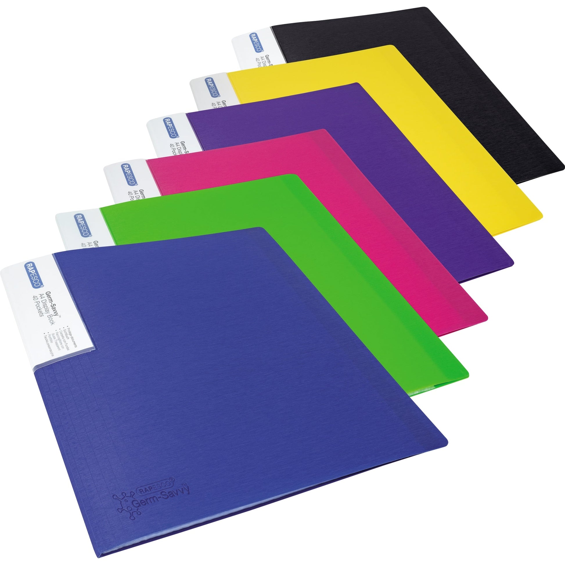 Bezeichnung: RAPESCO Sichtbuch Germ-SavvyT DIN A4 Polypropylen farbig sortiert 40 Hüllen 6 St./Pack.
