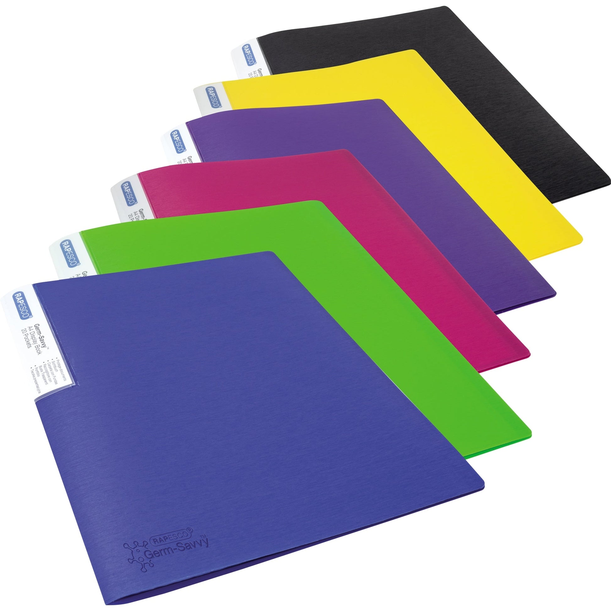 Bezeichnung: RAPESCO Sichtbuch Germ-SavvyT DIN A4 Polypropylen farbig sortiert 20 Hüllen 6 St./Pack.