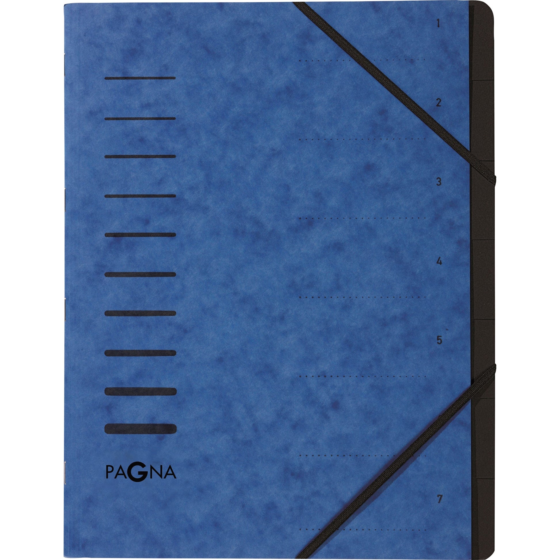 Bezeichnung: PAGNA Ordnungsmappe DIN A4 240g/m² Pressspankarton Farbe: blau Farbe des Fächerblocks: schwarz 7 Fächer