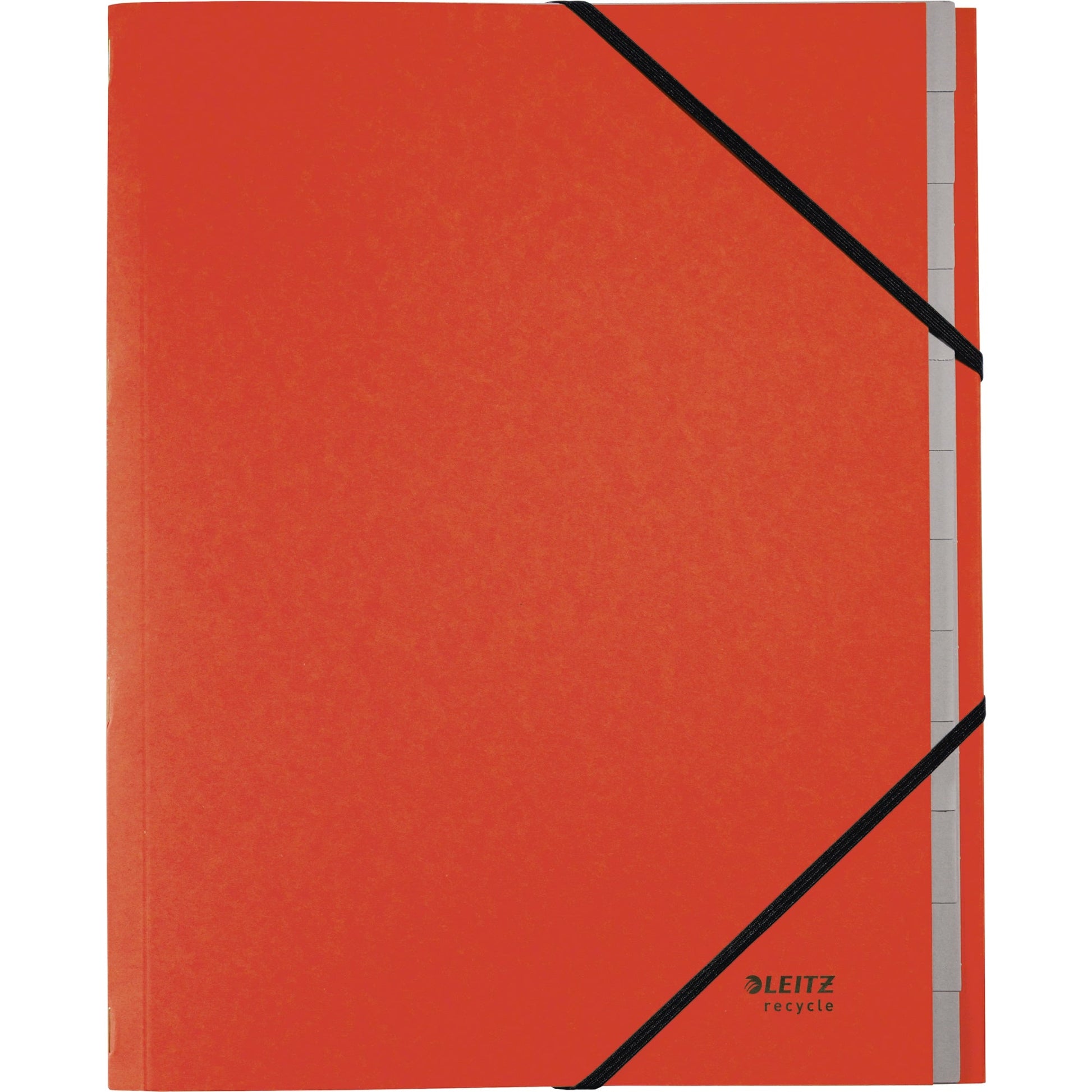 Bezeichnung: Leitz Ordnungsmappe Recycle DIN A4 275g/m² Karton, 100 % recycelt Farbe: rot Farbe des Fächerblocks: grau 12 Fächer
