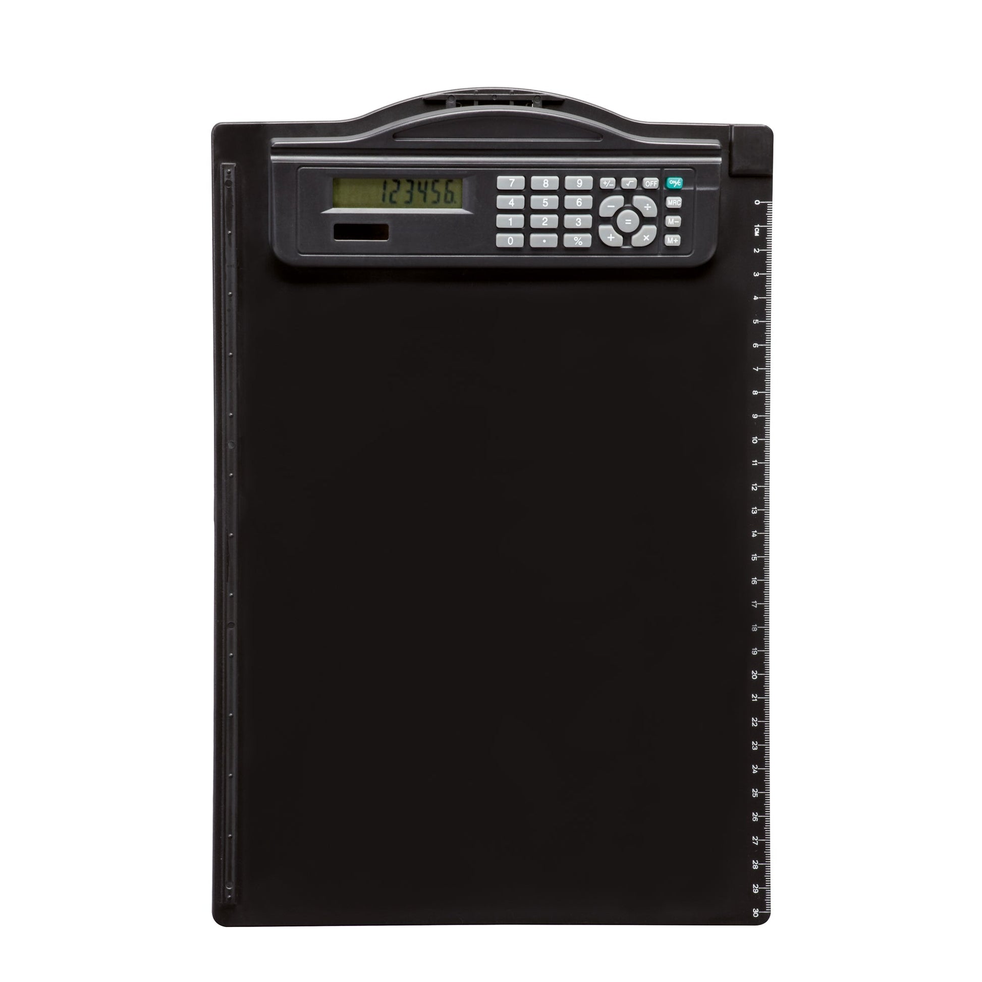 schwarzMit integriertem Solar-Rechner. Maße oder Mengen aufnehmen und berechnen, Rechnungsbeträge ermitteln oder Aufgaben im Unterricht lösen. Ideal für die Baustelle, für Handwerker, im Unterricht, Lager oder bei der Inventur. Papieranschlag links, cm-Maß an der rechten Seite (30 cm). Breiter Klemmer mit kräftigen Metallfedern. Leistungsstarke Rechner-Funktionen: Dual-Power, 4 Grundrechenarten, 8- stelliges Display, Speicher, %-Taste, Quadrierfunktion.