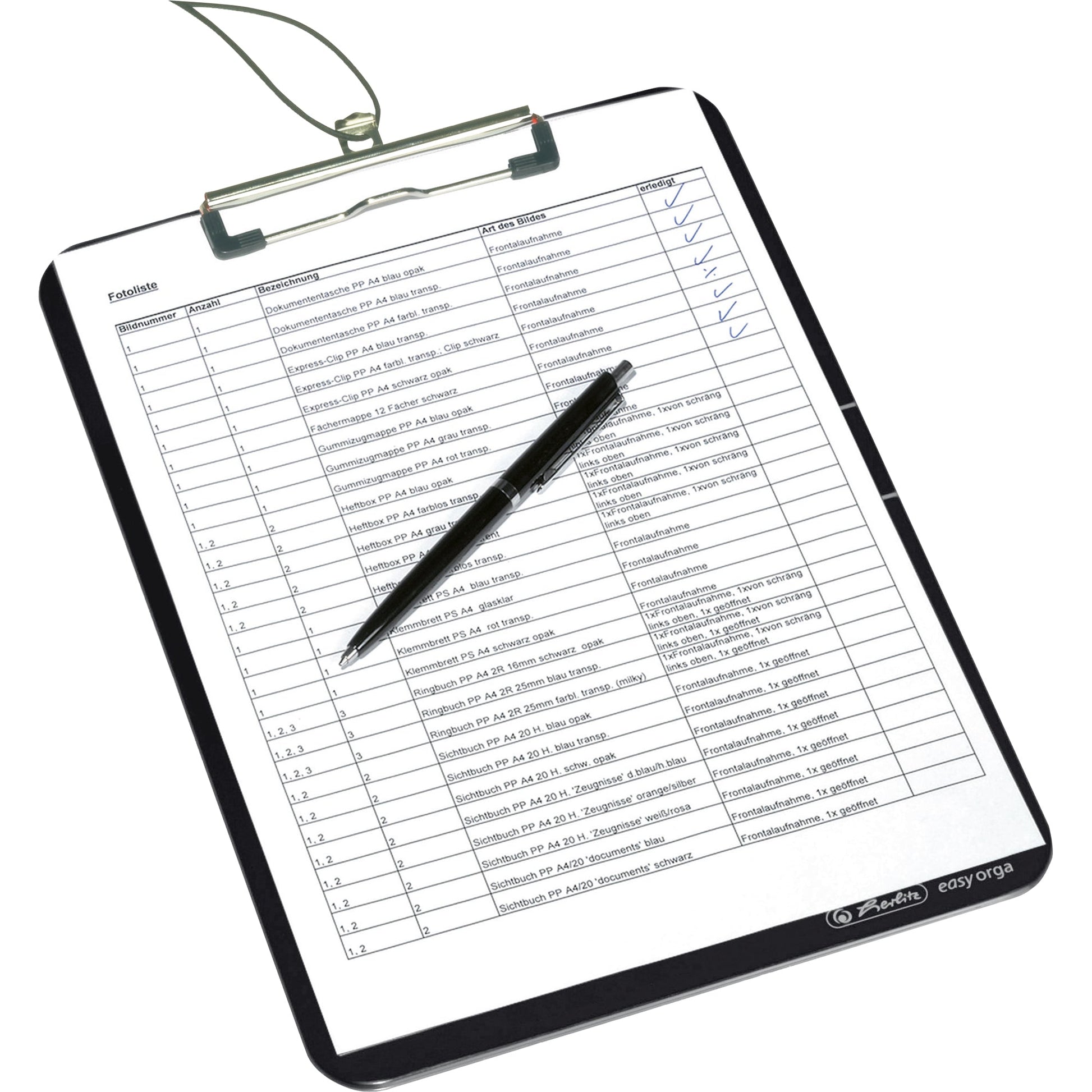 Bezeichnung: Herlitz Klemmbrett easy orga to go 22,5 x 31,5 cm (B x H) DIN A4 Polystyrol opak schwarz