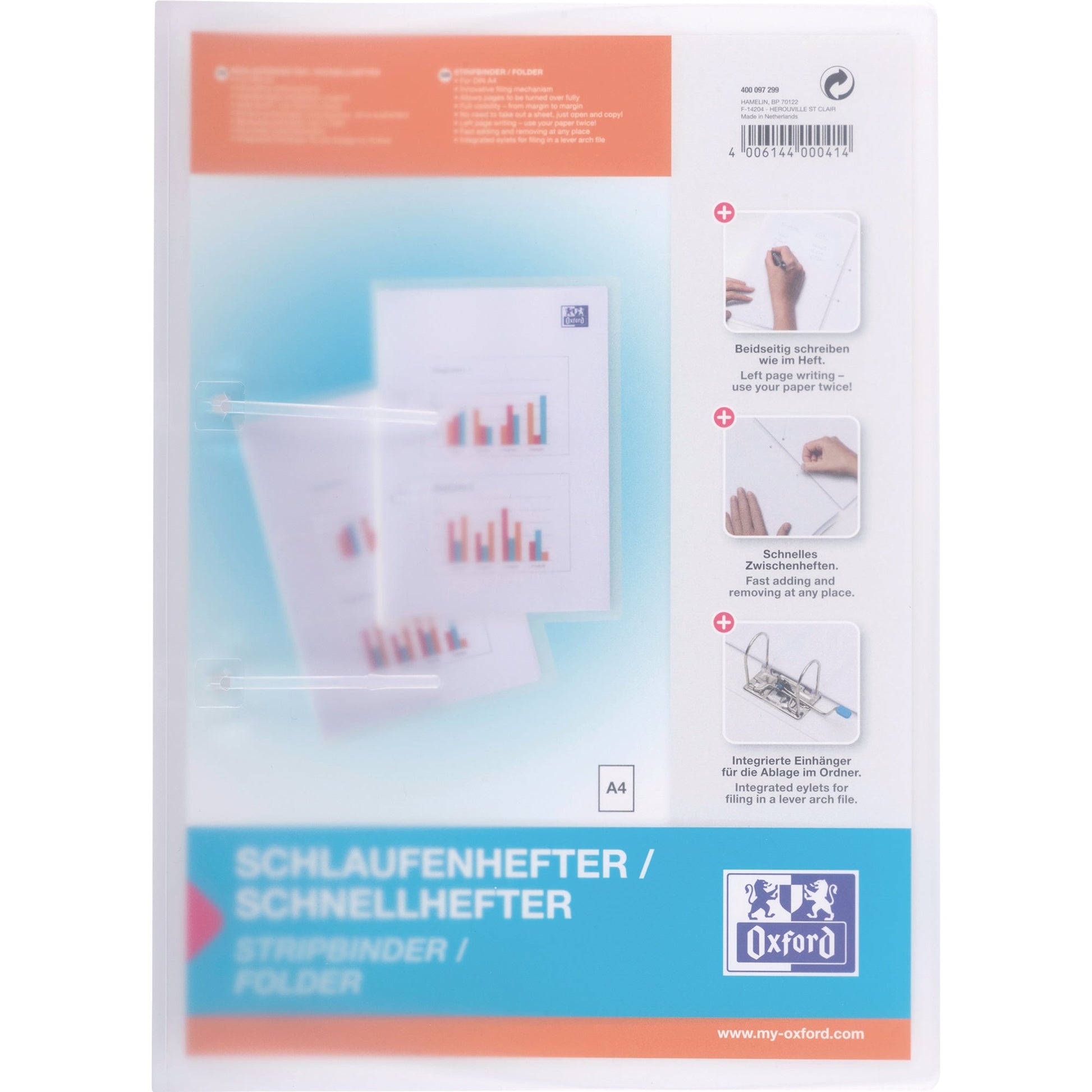 Bezeichnung: Oxford Schlauchhefter DIN A4 ohne transparenten Vorderdeckel Polypropylen farblos