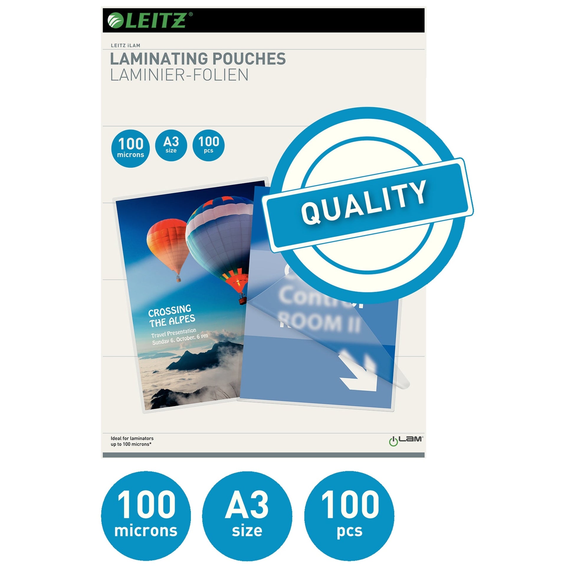 Bezeichnung: Leitz Laminierfolie 303 x 426 mm (B x H) DIN A3 100µm glänzend 100 St./Pack.