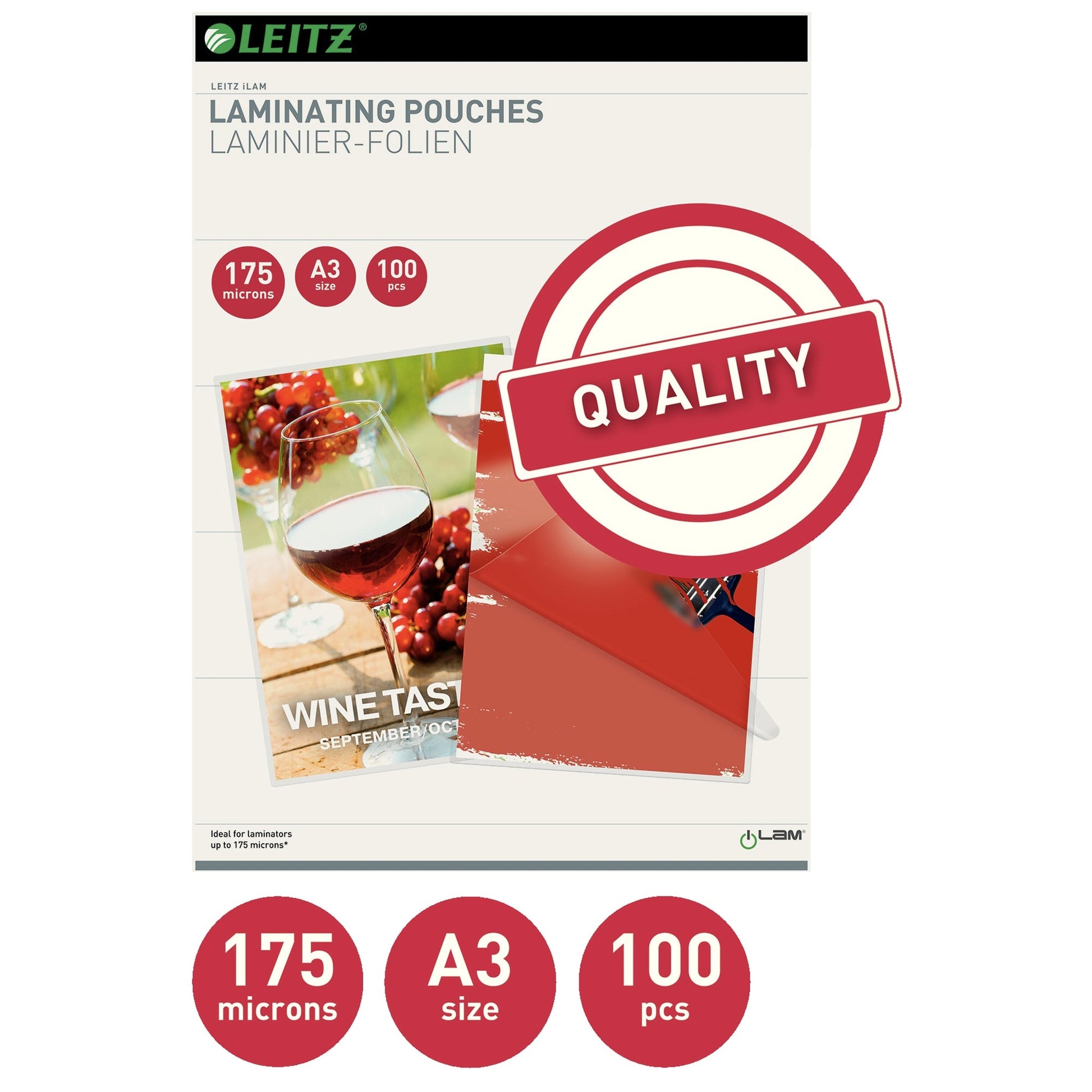 Bezeichnung: Leitz Laminierfolie 303 x 426 mm (B x H) DIN A3 175µm glänzend 100 St./Pack.