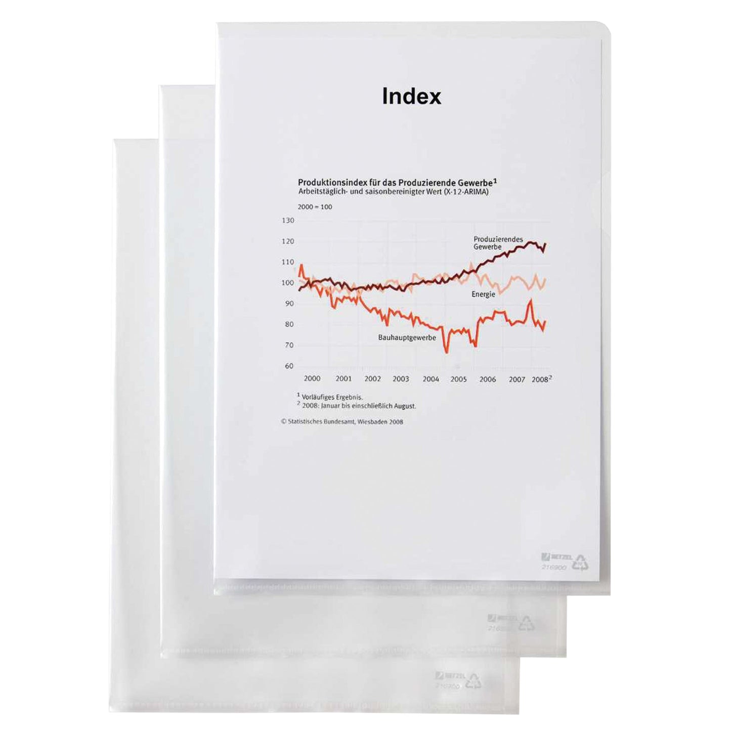 Bezeichnung: Hetzel Sichthülle DIN A4 110µm oben, rechts offen nicht dokumentenecht Polypropylen glasklar genarbt 50 St./Pack.