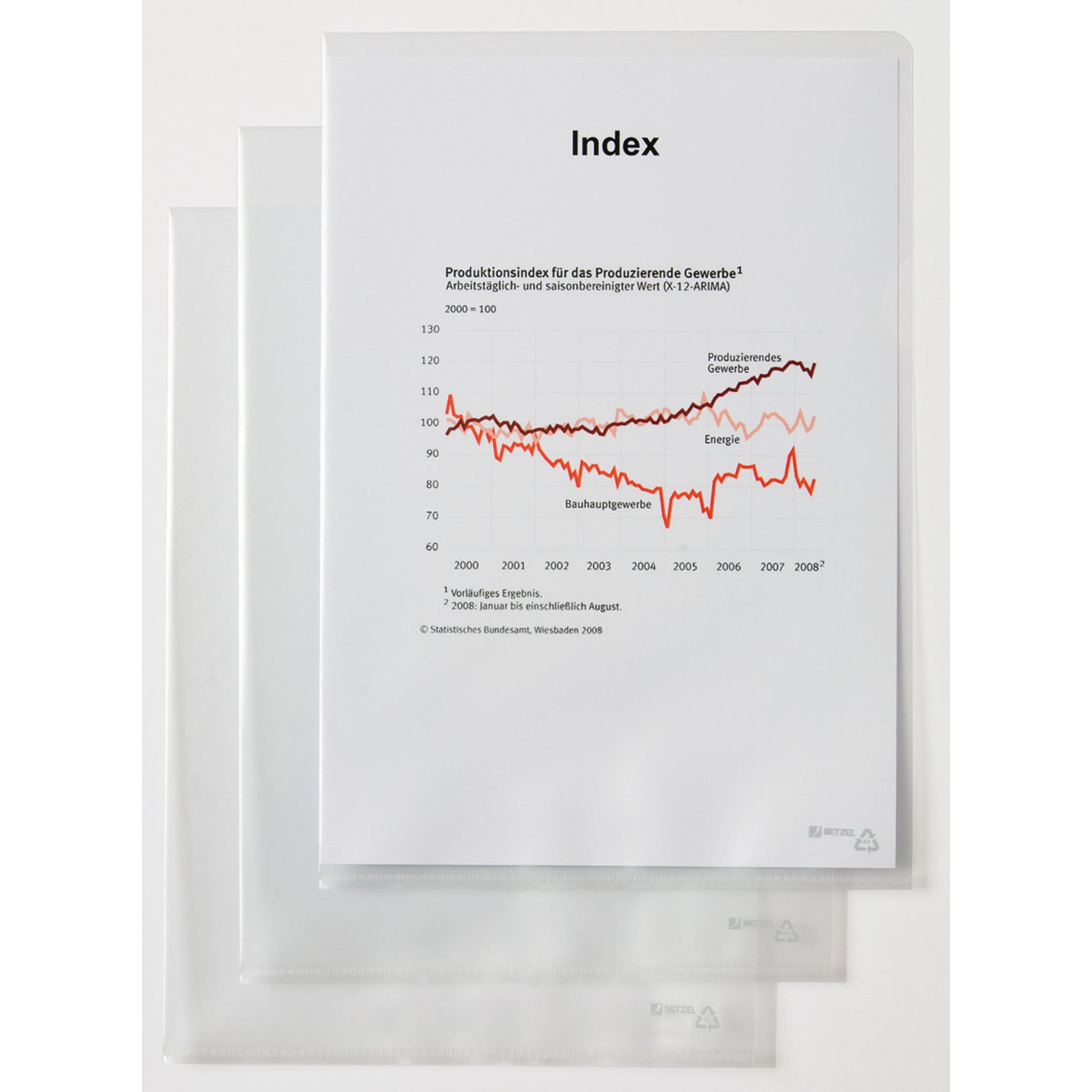 Bezeichnung: Hetzel Sichthülle DIN A4 120µm oben, rechts offen nicht dokumentenecht Polypropylen glasklar glänzend 50 St./Pack.