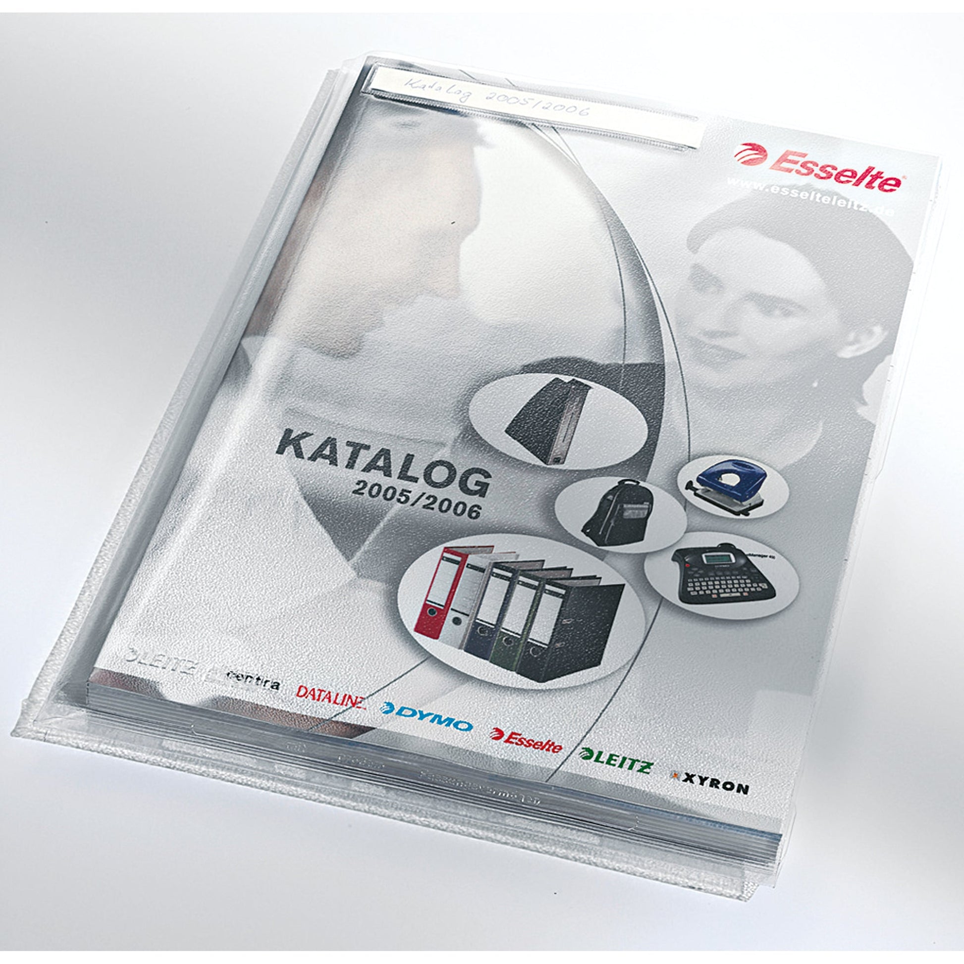 farblosMit dehnbarem, verstärktem Boden für voluminöse Kataloge und Dokumente.