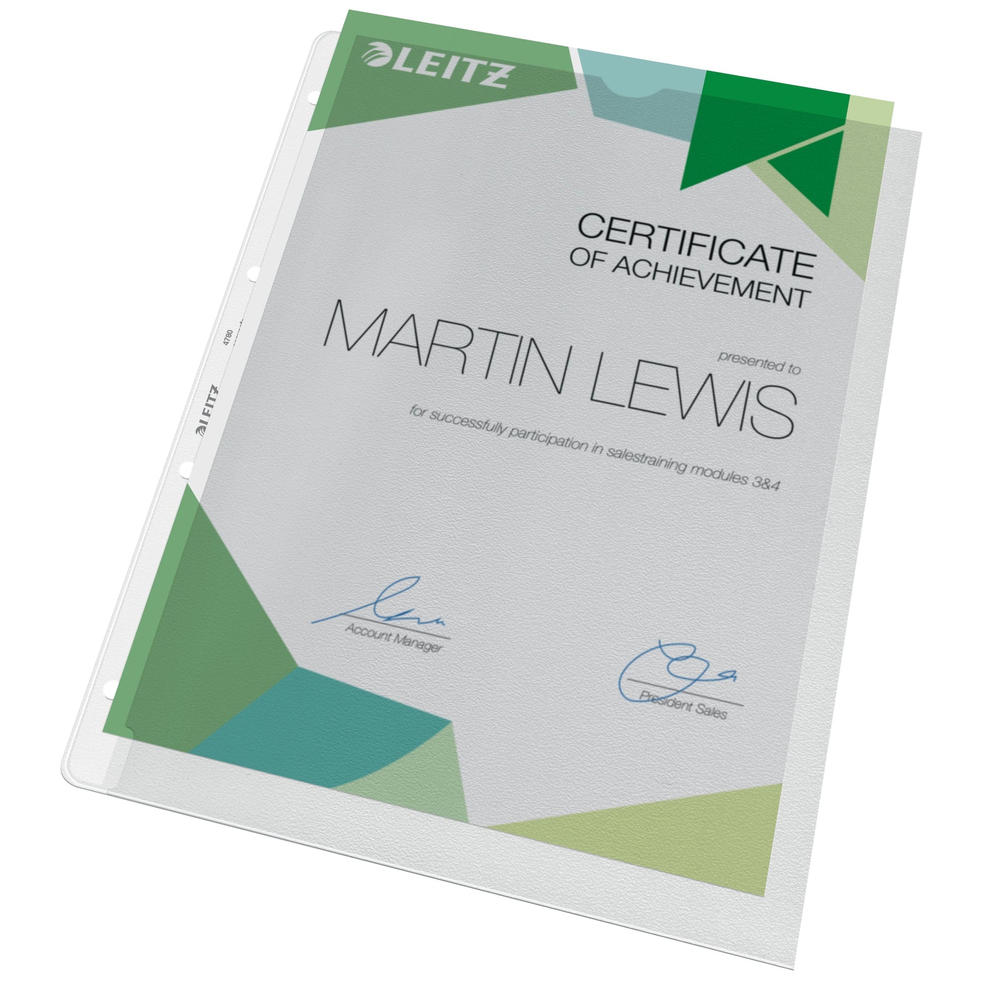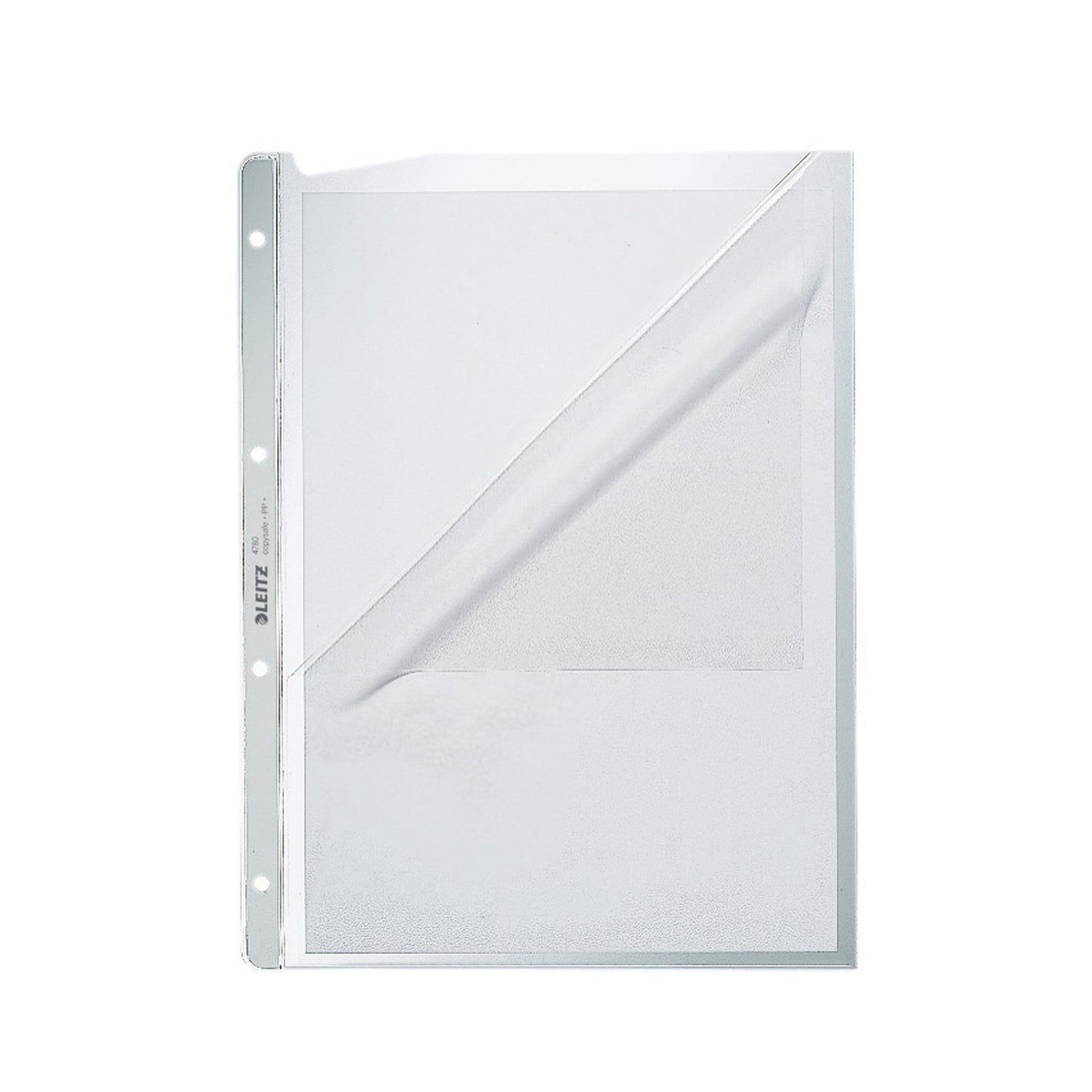 Bezeichnung: Leitz Prospekthülle DIN A4 130µm oben, links offen Polypropylen, 30 % recycelt farblos 100 St./Pack.