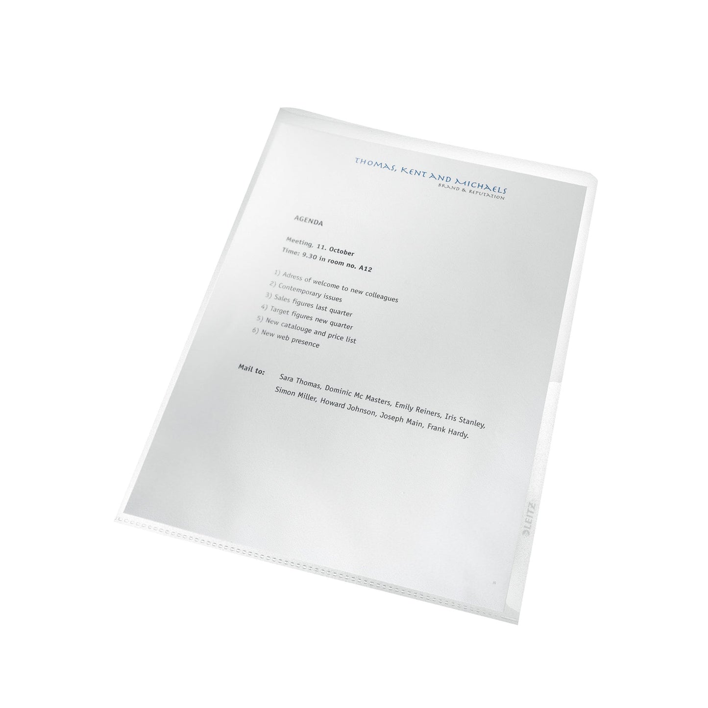 Bezeichnung: Leitz Sichthülle Recycle DIN A4 140µm oben, rechts offen dokumentenecht Polypropylen, 90 % recycelt farblos genarbt 25 St./Pack.