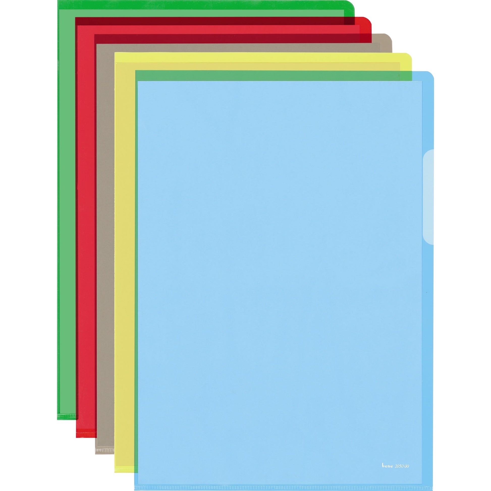 Bezeichnung: Bene Sichthülle DIN A4 150µm oben, rechts offen dokumentenecht PVC-Hartfolie farbig sortiert glänzend 100 St./Pack.