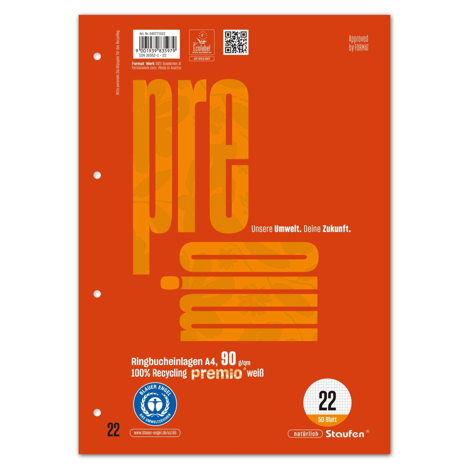 Bezeichnung: Staufen Ringbucheinlage Premio DIN A4 kariert 90g/m² 4fach Lochung weiß 50 Bl./Pack.