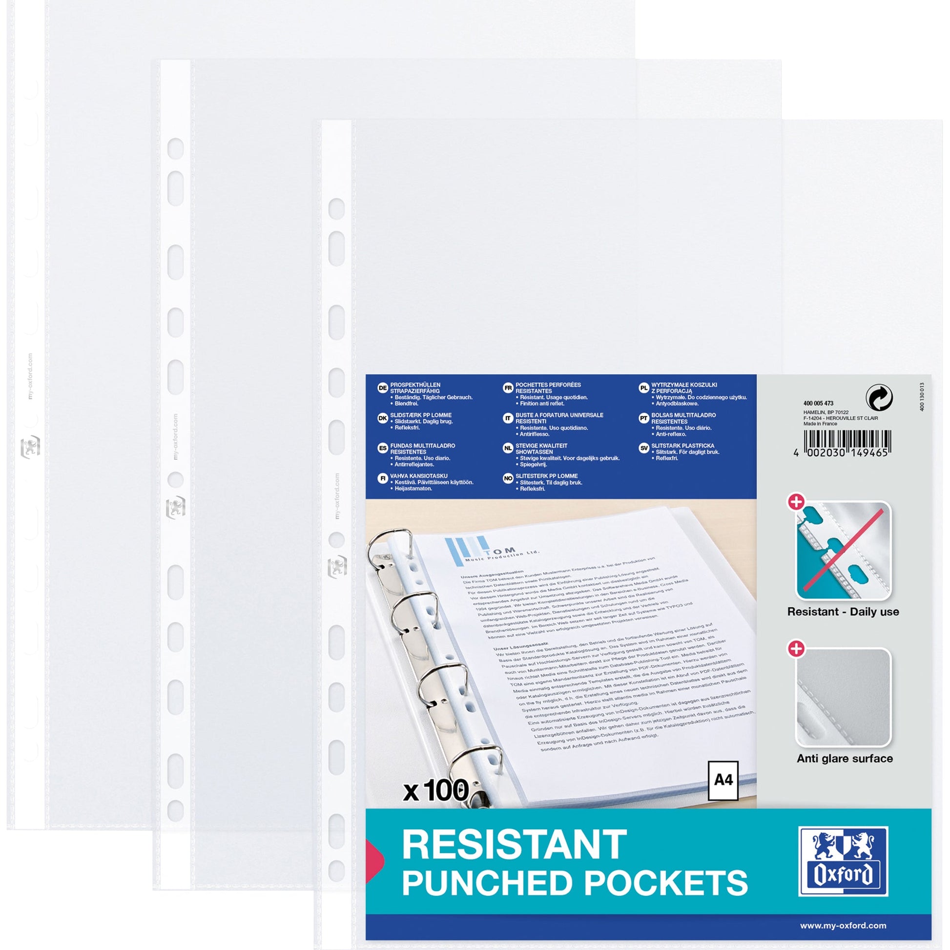 Bezeichnung: Oxford Prospekthülle DIN A4 90µm oben offen Polypropylen transparent 100 St./Pack.