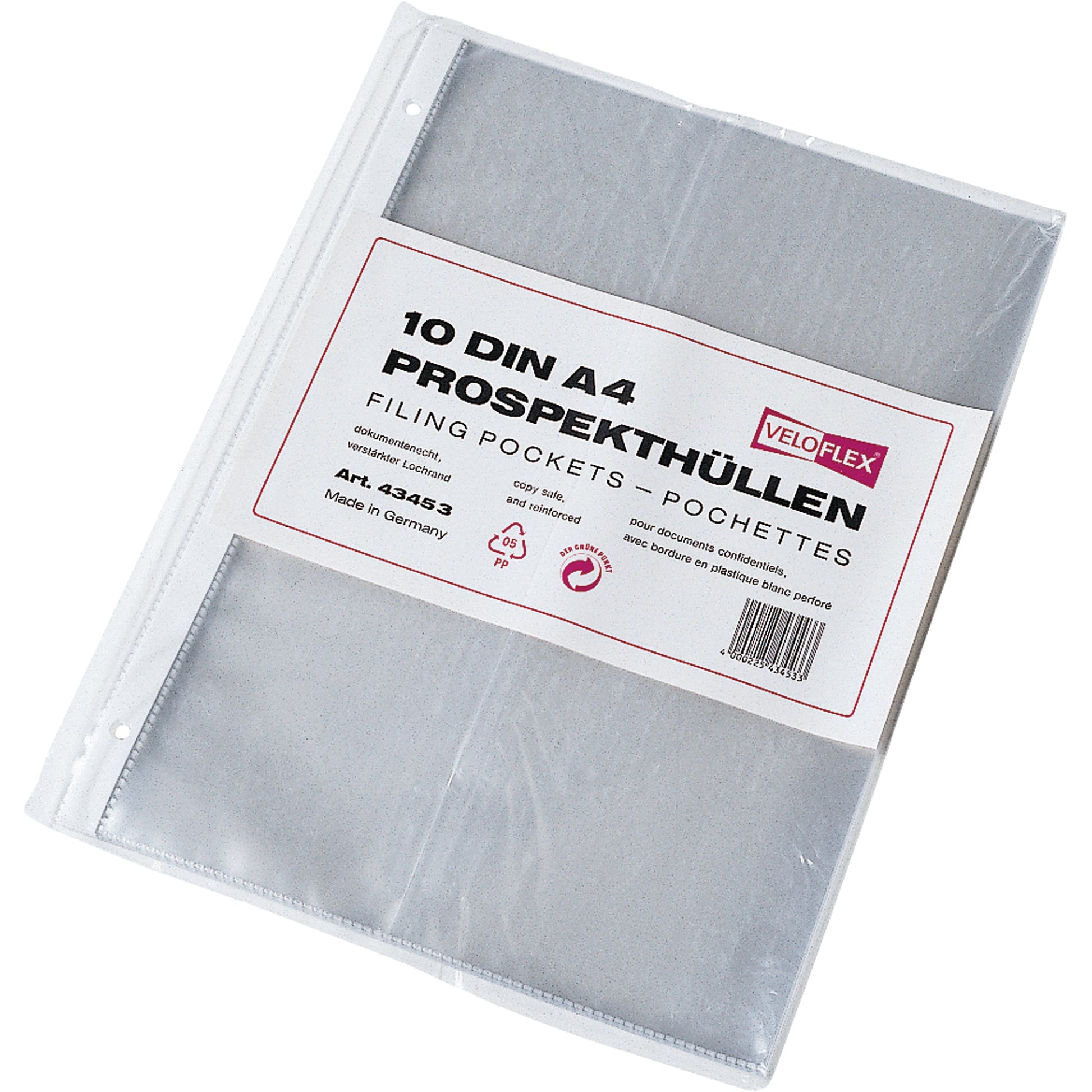 Bezeichnung: Veloflex Prospekthülle DIN A4 75µm oben offen Polypropylen glasklar 10 St./Pack.