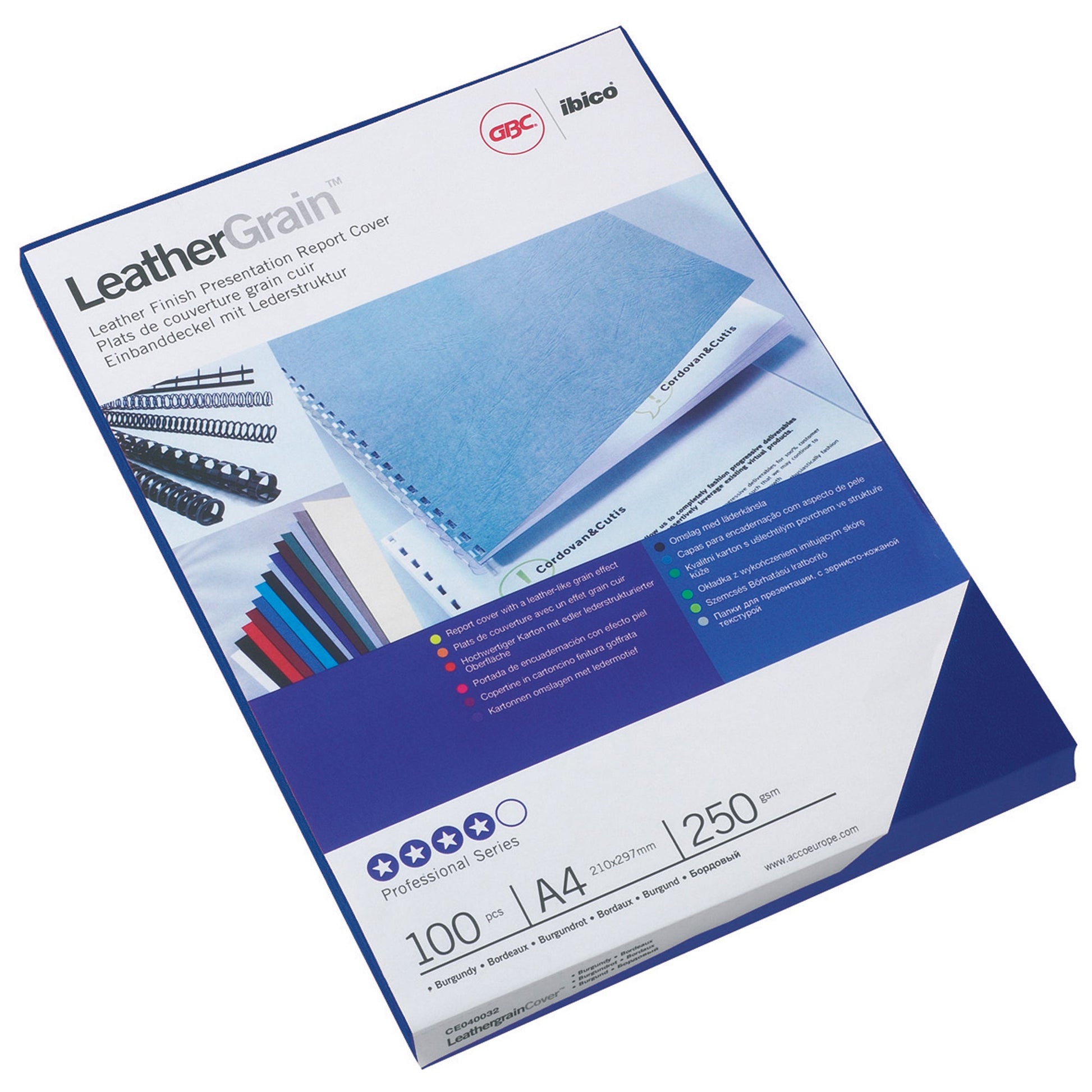 Bezeichnung: GBC® Einbanddeckel LeatherGrainT DIN A4 250g/m² Karton blau 100 St./Pack.