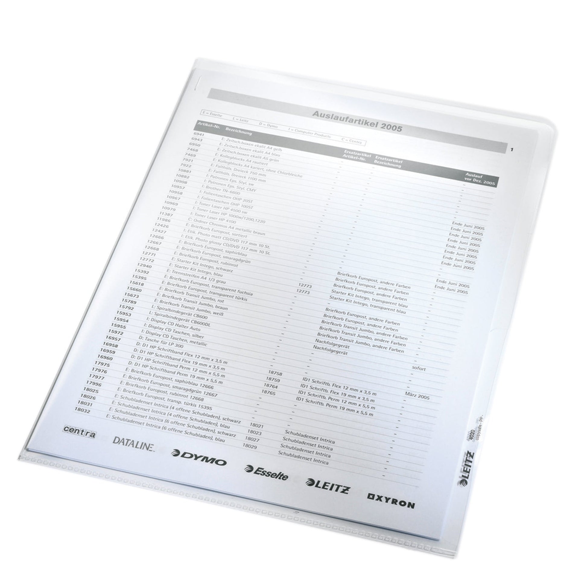 Bezeichnung: Leitz Sichthülle DIN A4 160µm oben, rechts offen dokumentenecht Polypropylenfolie transparent glasklar 100 St./Pack.