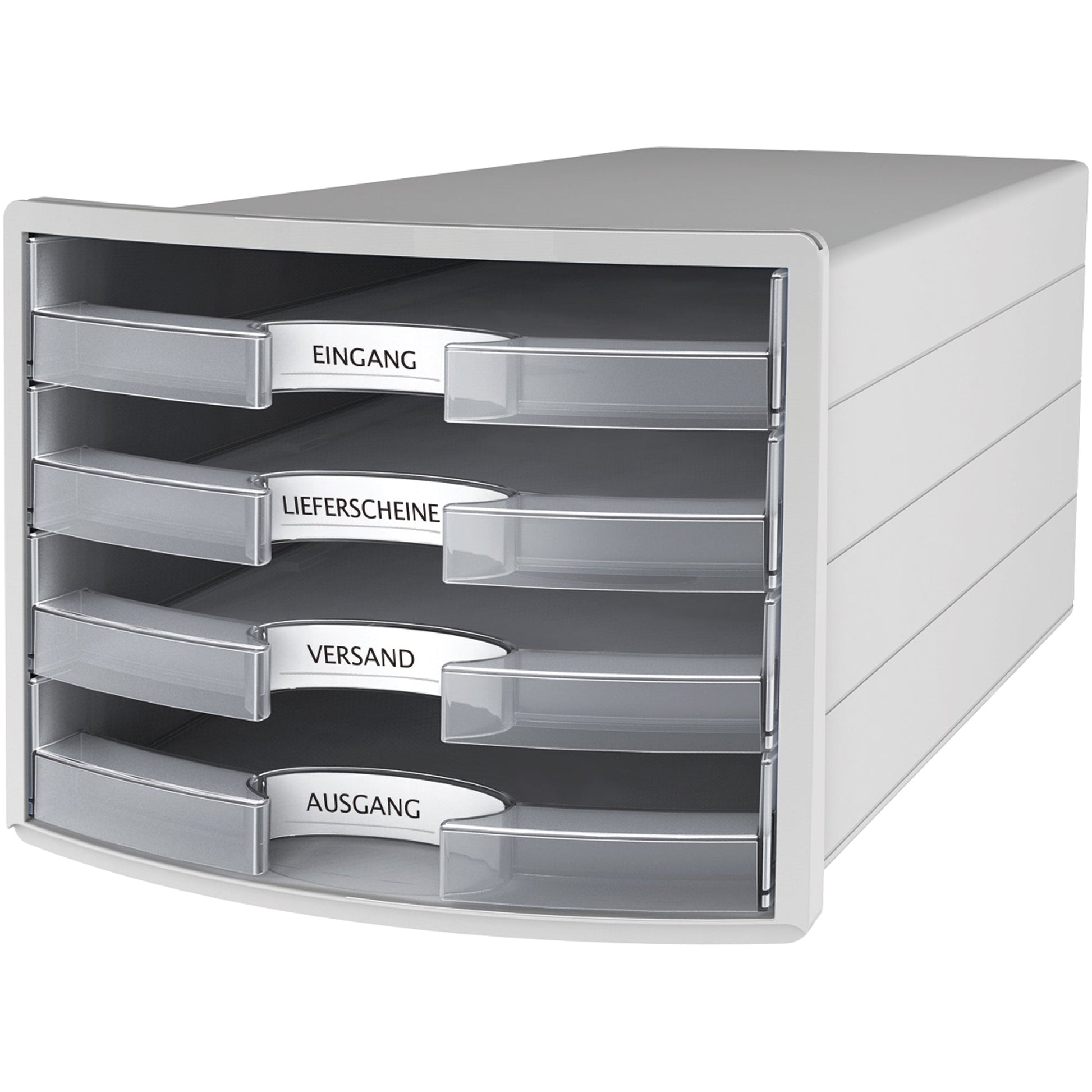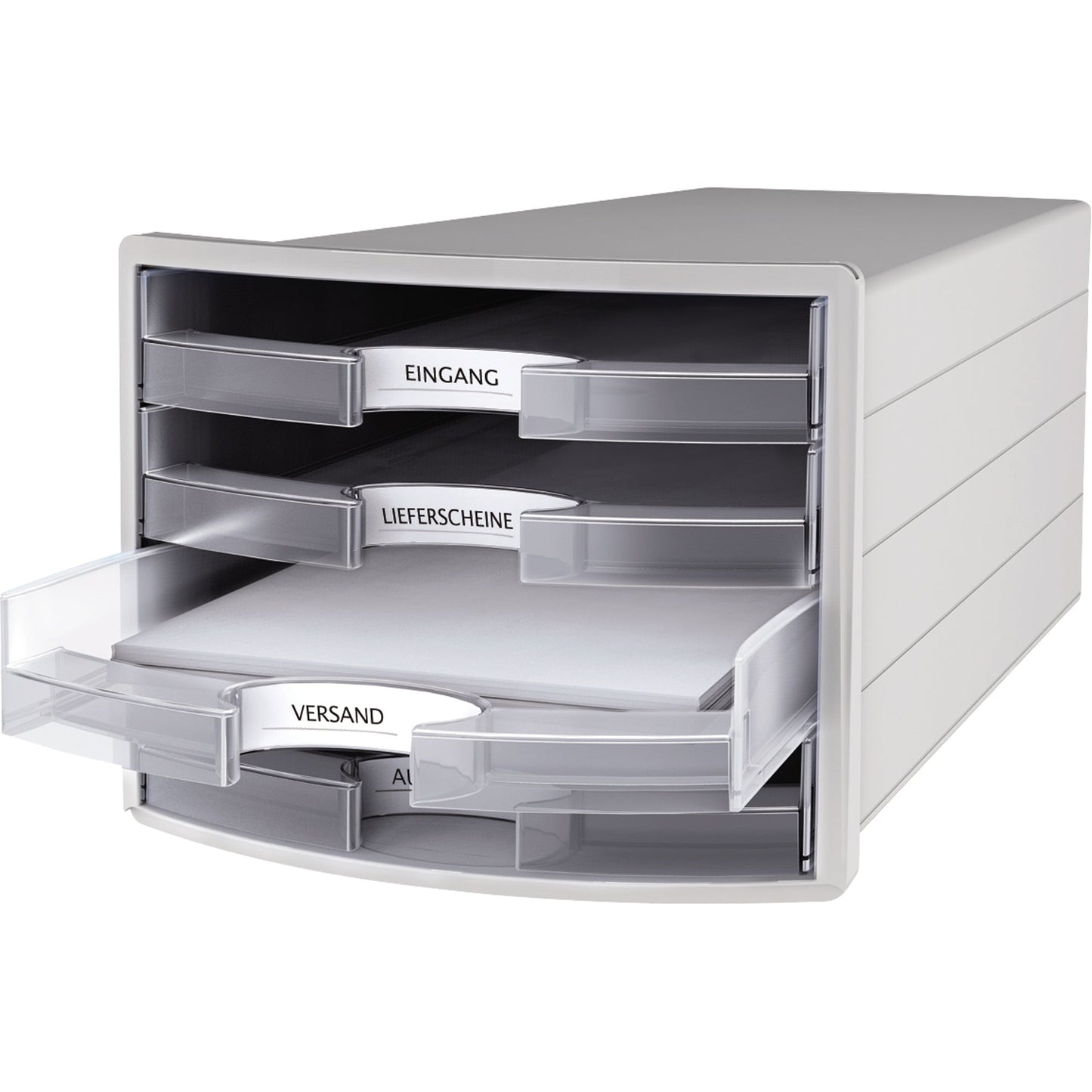 Bezeichnung: HAN Schubladenbox IMPULS 4 Schubladen DIN A4, DIN C4 Polystyrol Gehäusefarbe: lichtgrau Farbe der Schublade: klar transluzent