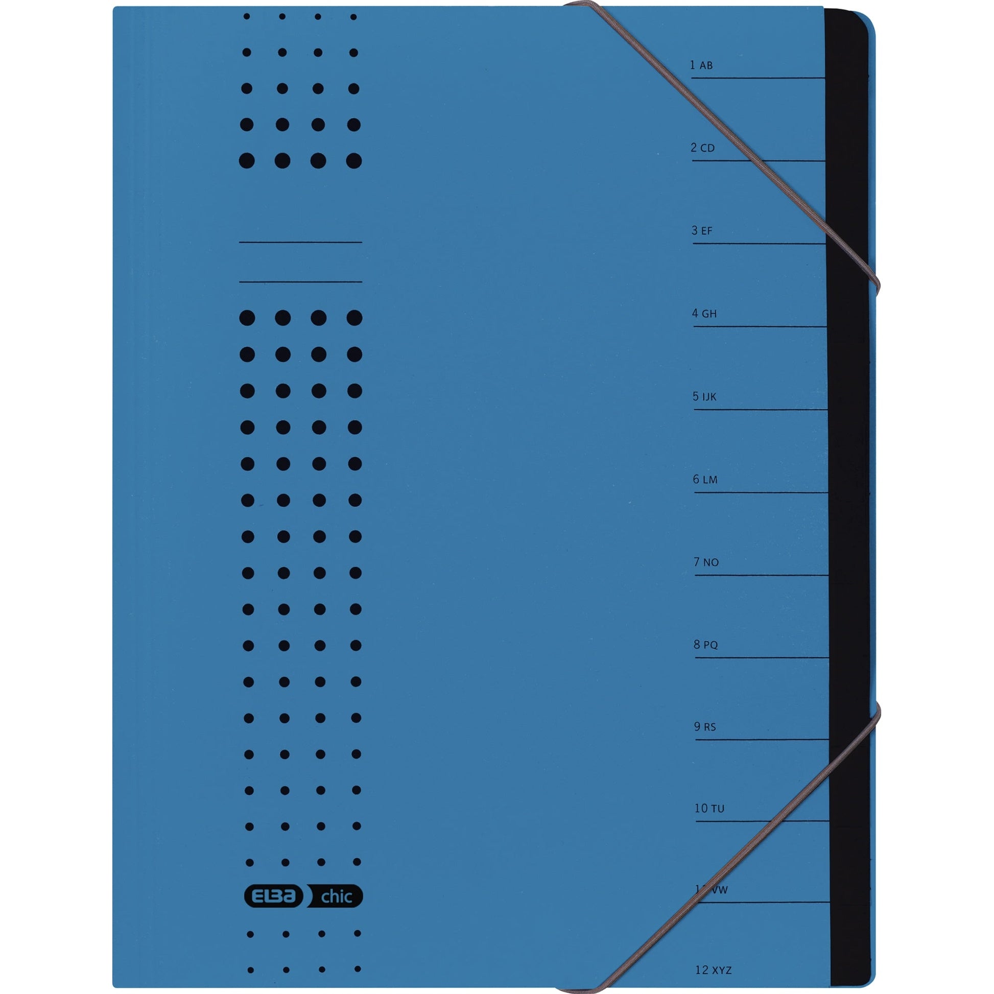 Bezeichnung: ELBA Ordnungsmappe chic DIN A4 320g/m² Intensivkarton, recycelt Farbe: blau 7 Fächer