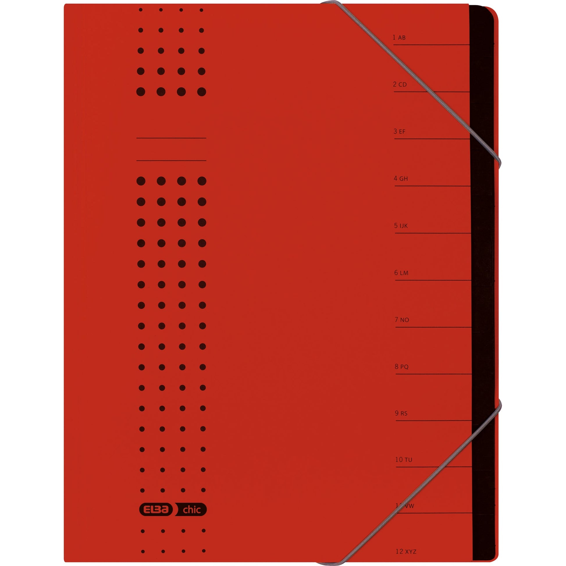 Bezeichnung: ELBA Ordnungsmappe chic DIN A4 320g/m² Intensivkarton, recycelt Farbe: rot 12 Fächer