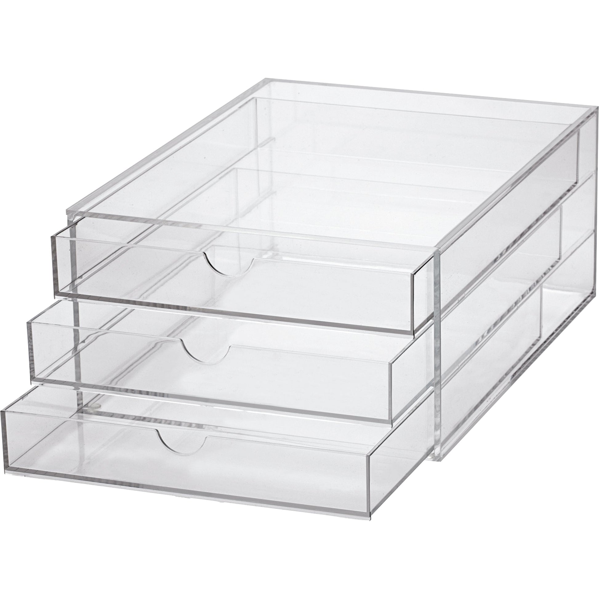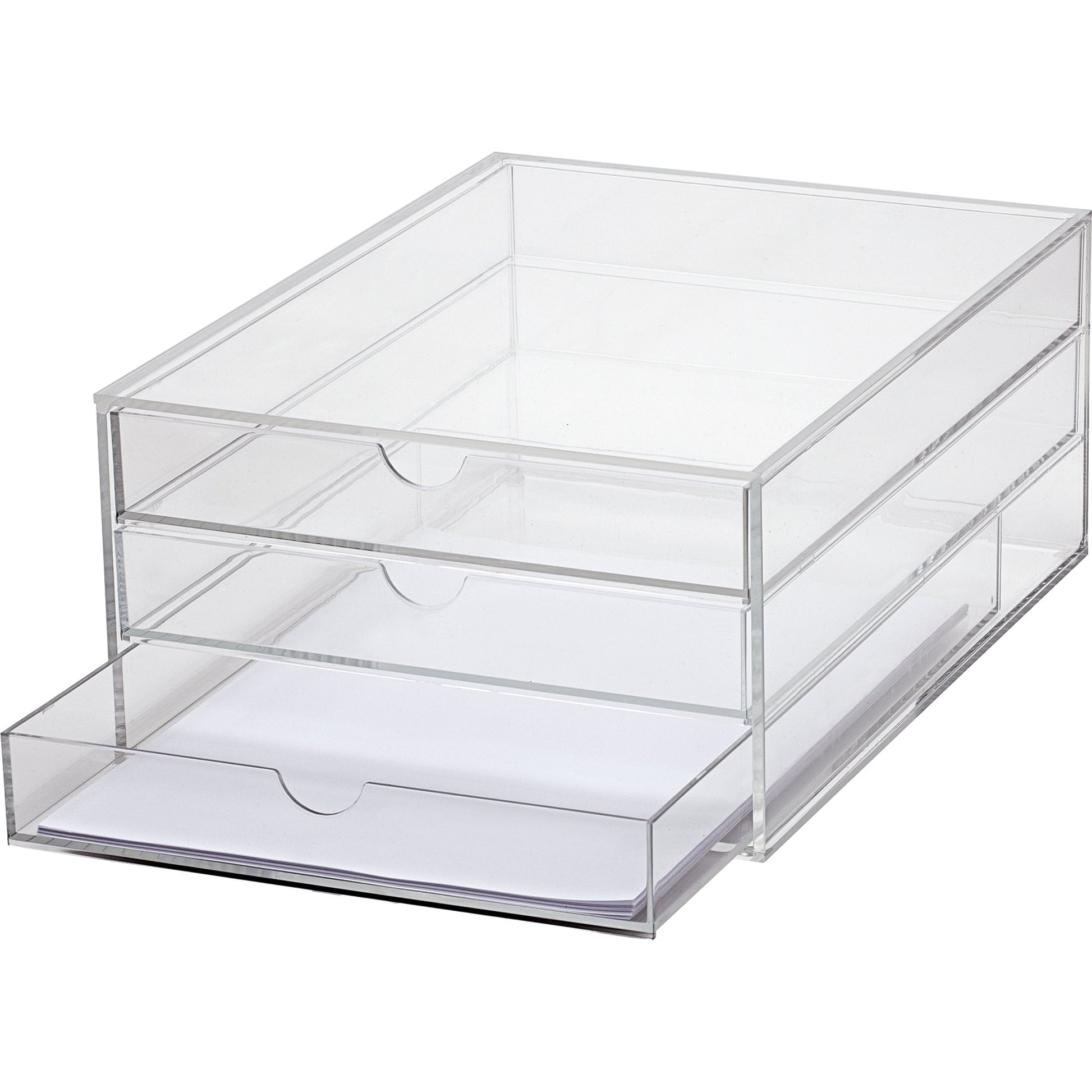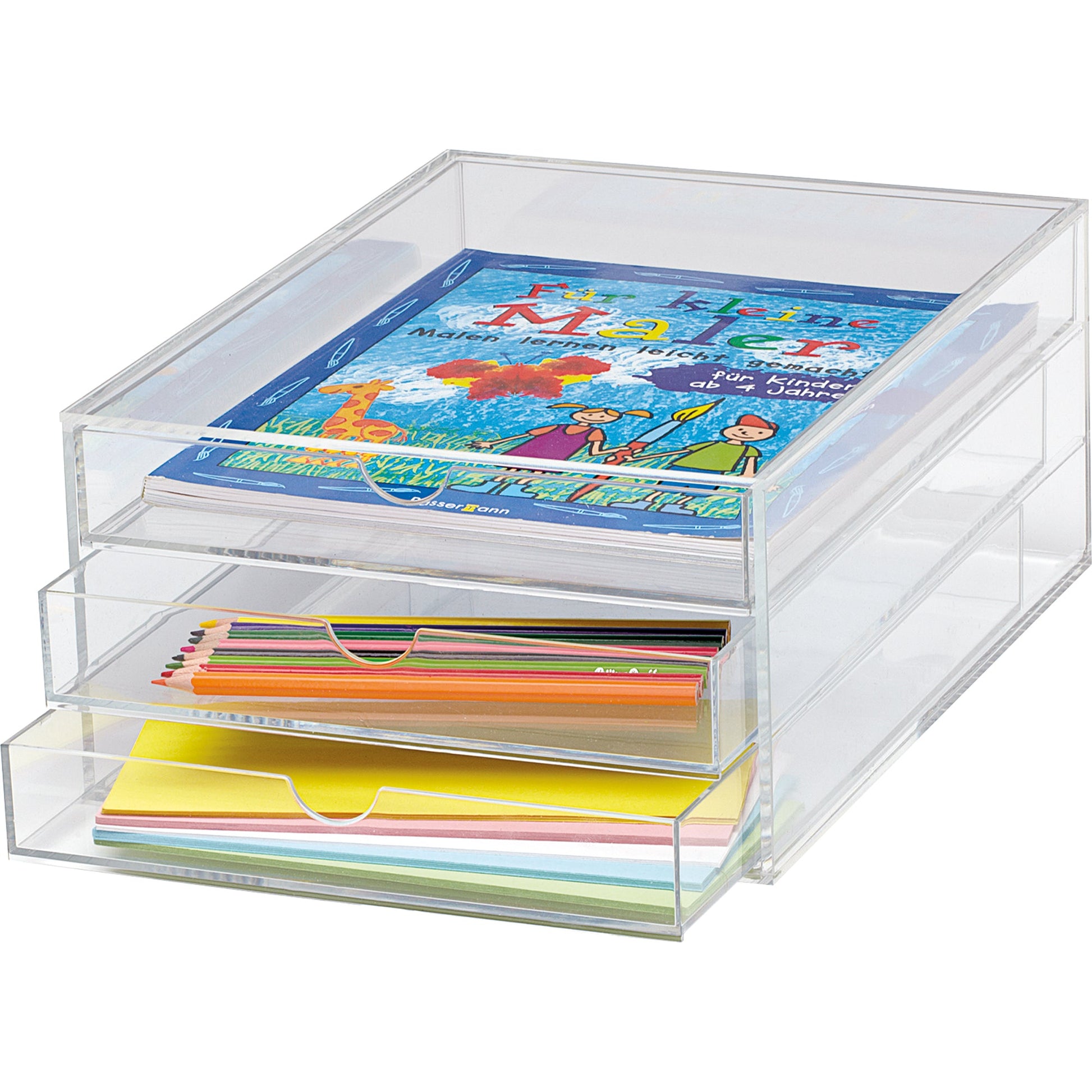 Bezeichnung: MAUL Schubladenbox Acryl 3 Schubladen DIN A4 Acryl Gehäusefarbe: glasklar Farbe der Schublade: glasklar