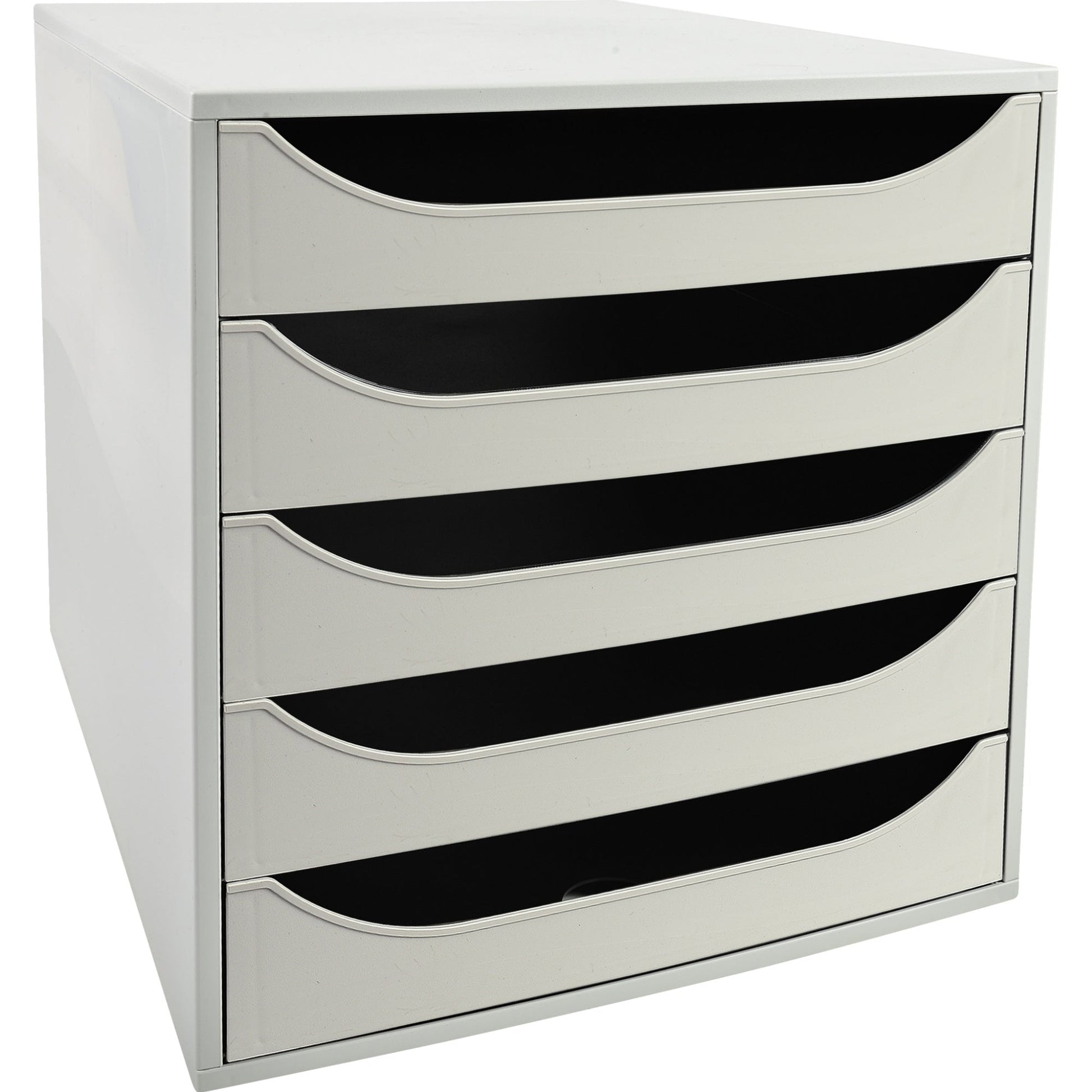Bezeichnung: Exacompta Schubladenbox ECOBOX 5 Schubladen DIN A4, Überbreite Polystyrol Gehäusefarbe: grau Farbe der Schublade: grau