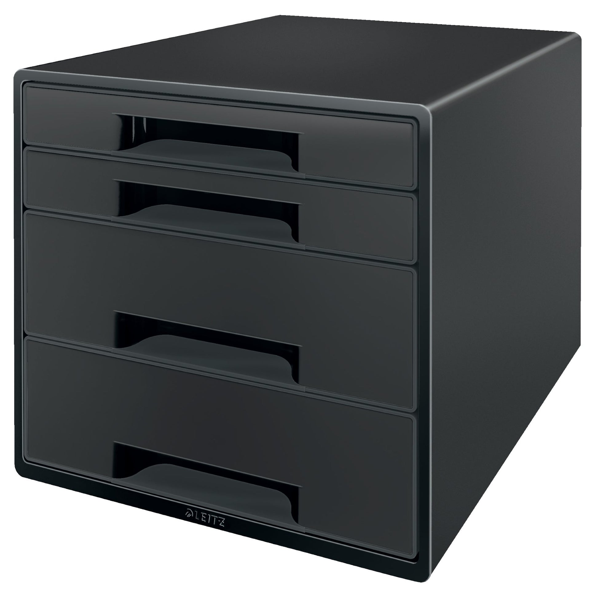 Bezeichnung: Leitz Schubladenbox Recycle CUBE 4 Schubladen DIN A4 Polystyrol, 90 % recycelt Gehäusefarbe: schwarz Farbe der Schublade: schwarz
