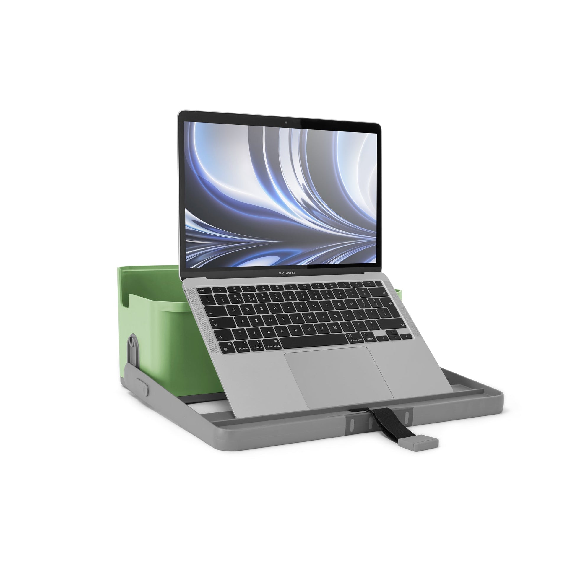 grünUnser innovativster, flexibelster Schreibtisch-Caddy, der sich problemlos an Sie und jeden Arbeitsplatz anpassen und integrieren lässt. Der Griff lässt sich in eine Laptop-Erhöhung mit 2 Höhenoptionen umwandeln. Zwei Trennrippen zur Neukonfiguration des großen Fachs. Ein praktischer Behälter für Stifte oder andere Schreibwaren. Mit Tastaturschlitz mit sicherem Riemen.
