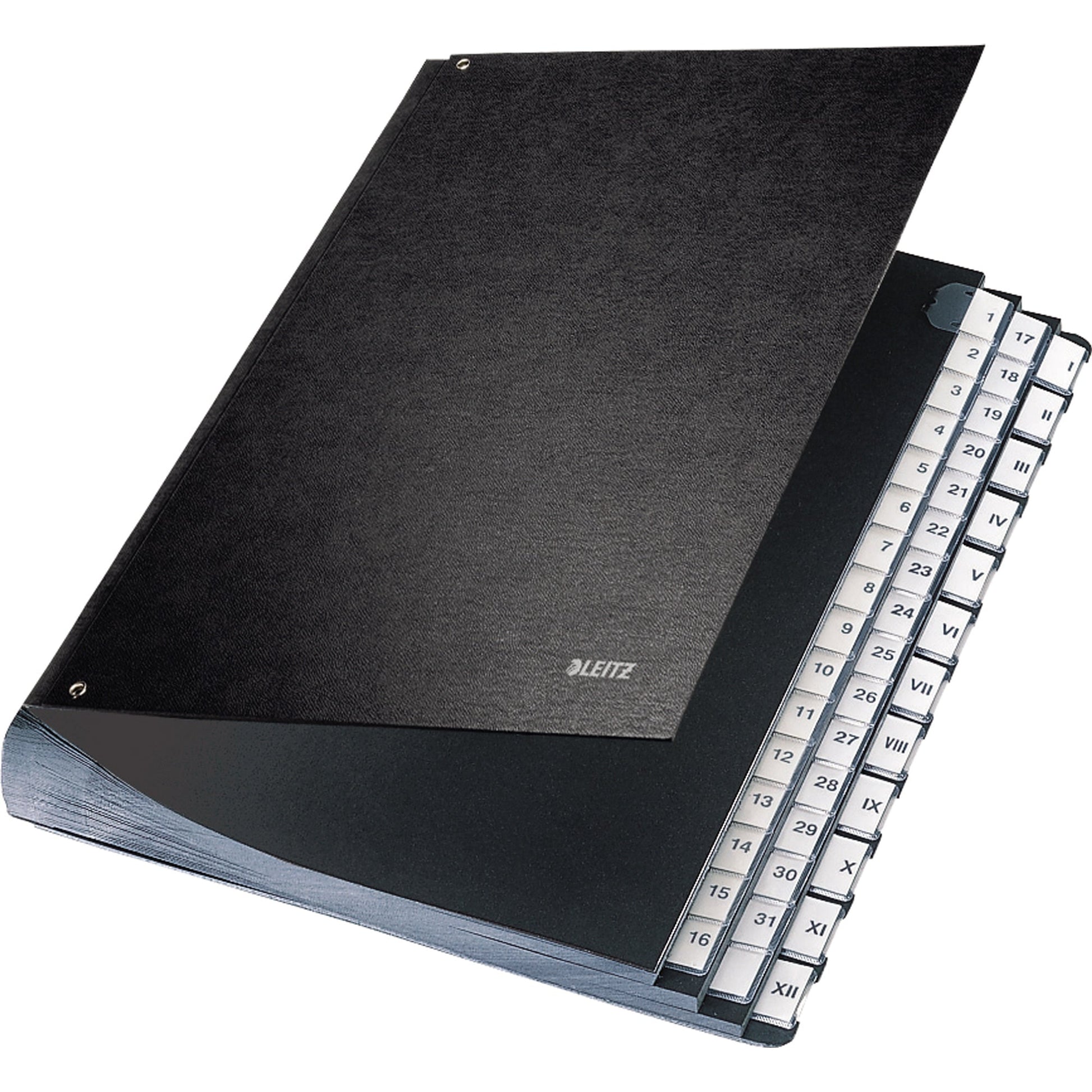 Bezeichnung: Leitz Pultordner DIN A4 1-31, I-XII Hartpappe schwarz 44 Fächer
