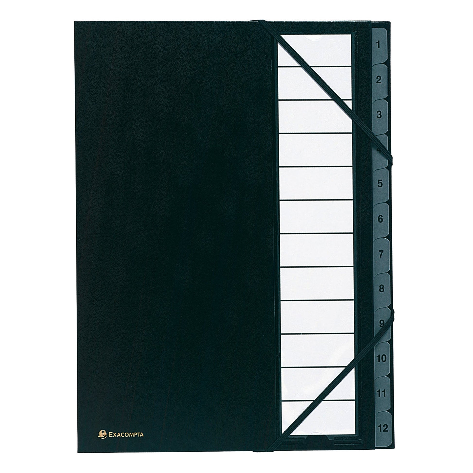 Bezeichnung: Exacompta Ordnungsmappe Ordonator® DIN A4 225g/m² Balacron Farbe: schwarz Farbe des Fächerblocks: grau 12 Fächer