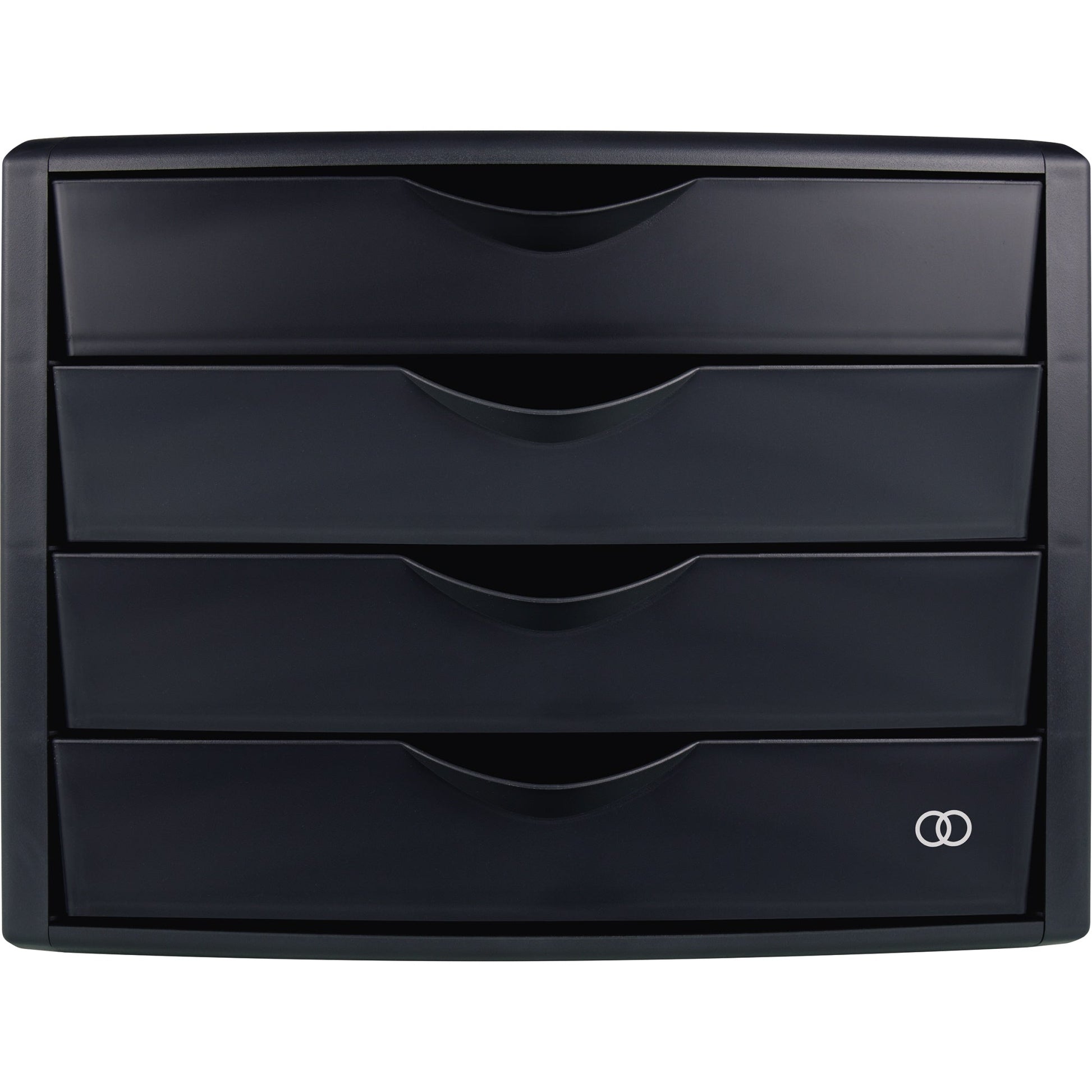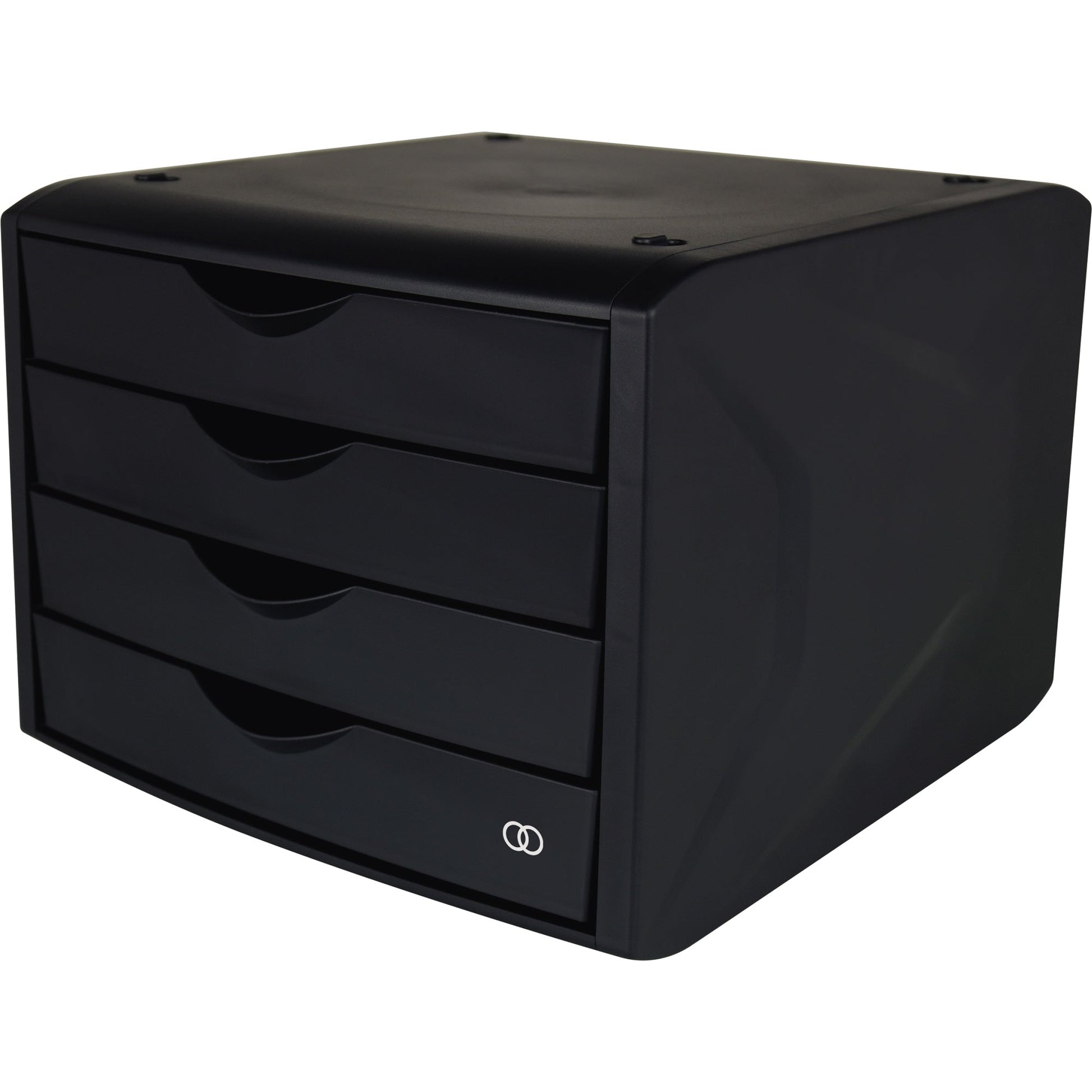 Bezeichnung: Soennecken Schubladenbox oeco 4 Schubladen DIN A4 Kunststoff, 80 % recycelt Gehäusefarbe: schwarz