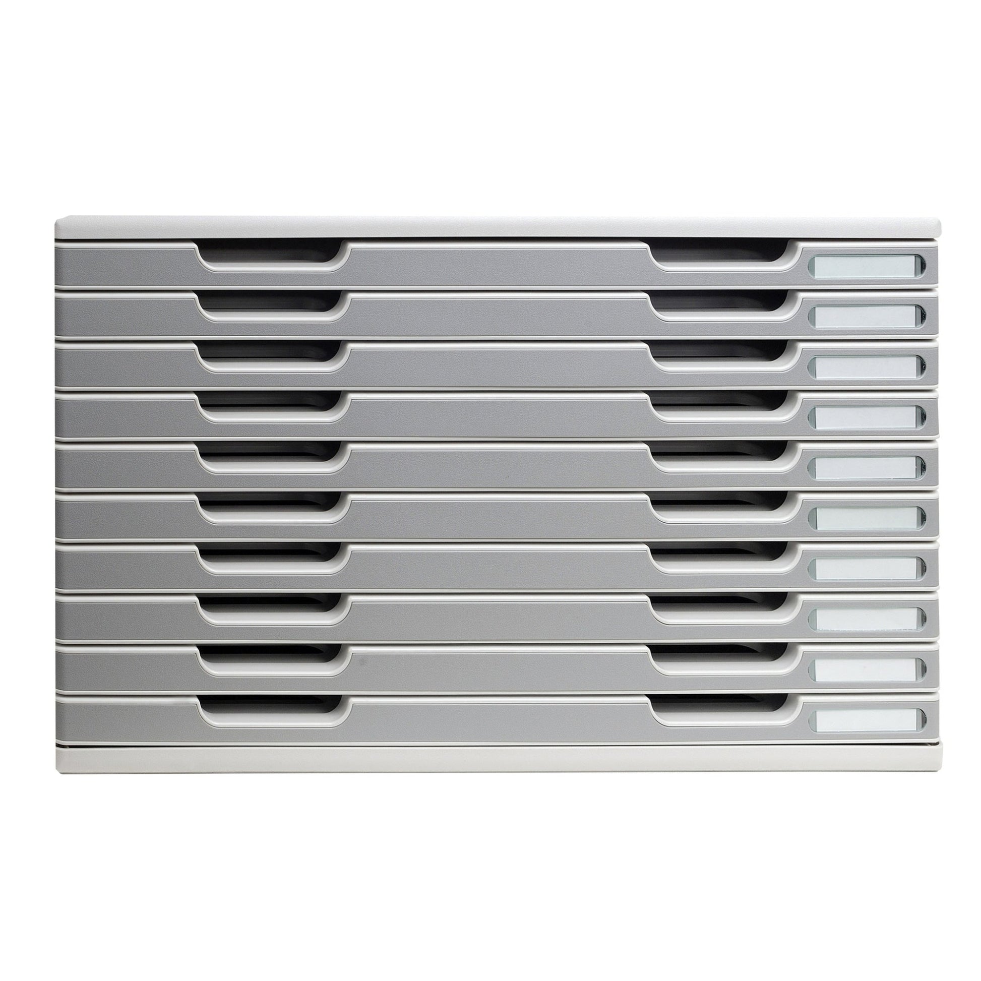 Bezeichnung: Exacompta Schubladenbox MODULO 10 Schubladen DIN A3+ Polystyrol Gehäusefarbe: lichtgrau Farbe der Schublade: steingrau