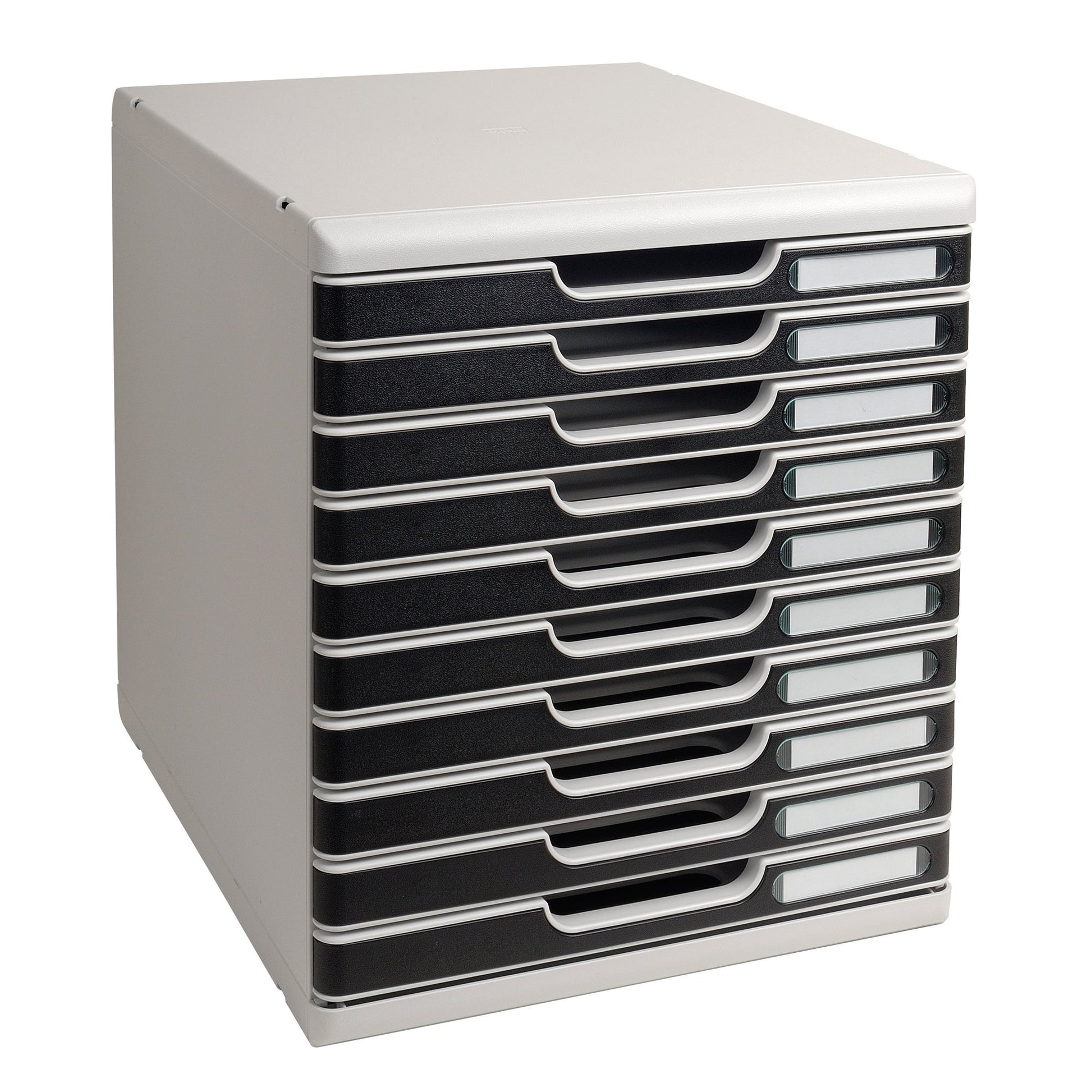 Bezeichnung: Exacompta Schubladenbox MODULO 10 Schubladen DIN A4+ Polystyrol Gehäusefarbe: lichtgrau Farbe der Schublade: schwarz