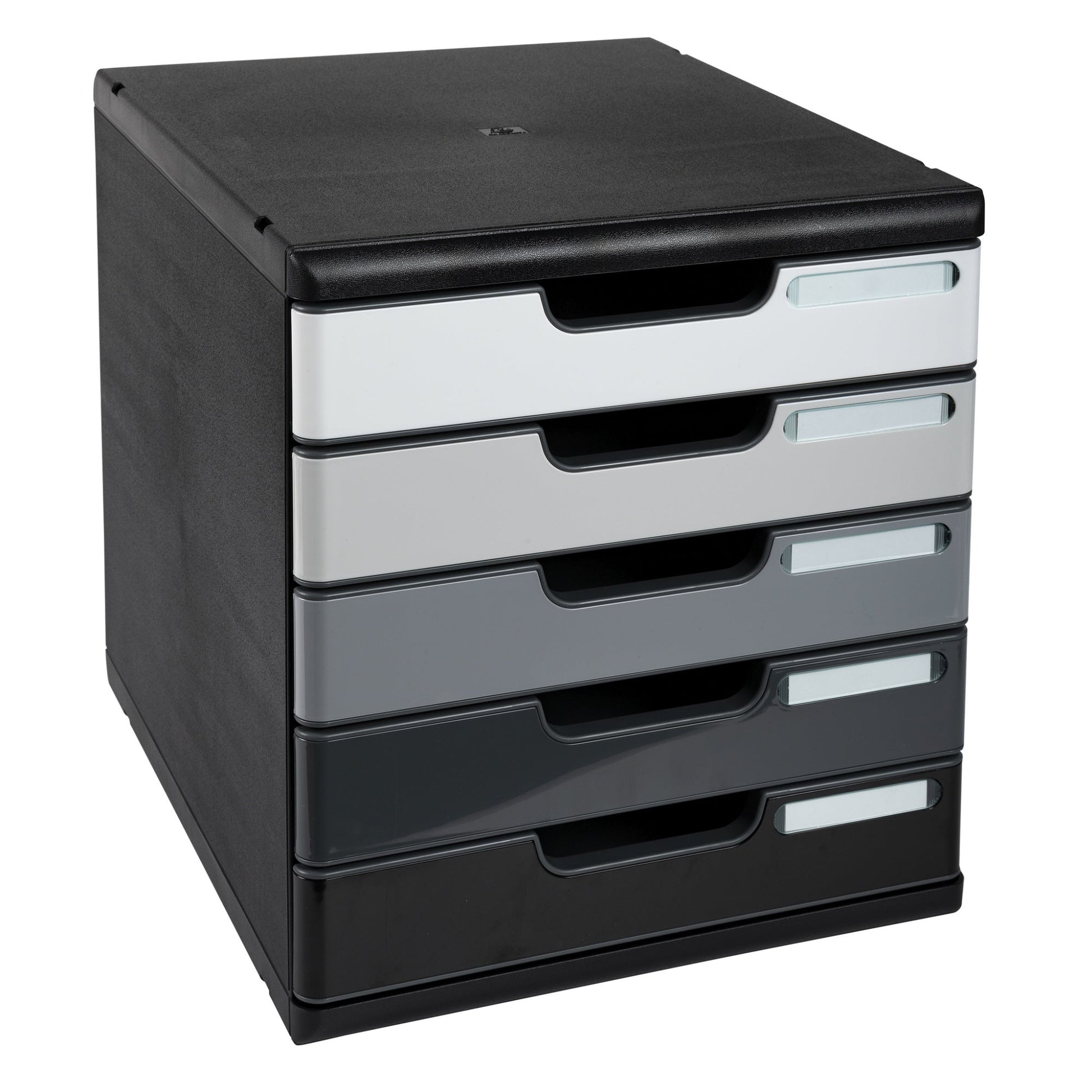 Bezeichnung: Exacompta Schubladenbox MODULO 5 Schubladen DIN A4+ Polystyrol Gehäusefarbe: schwarz Farbe der Schublade: grau