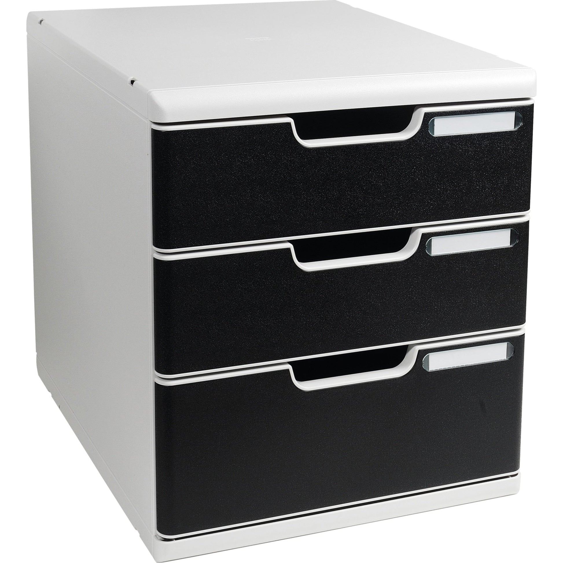 Bezeichnung: Exacompta Schubladenbox MODULO 3 Schubladen DIN A4+ Polystyrol Gehäusefarbe: lichtgrau Farbe der Schublade: schwarz