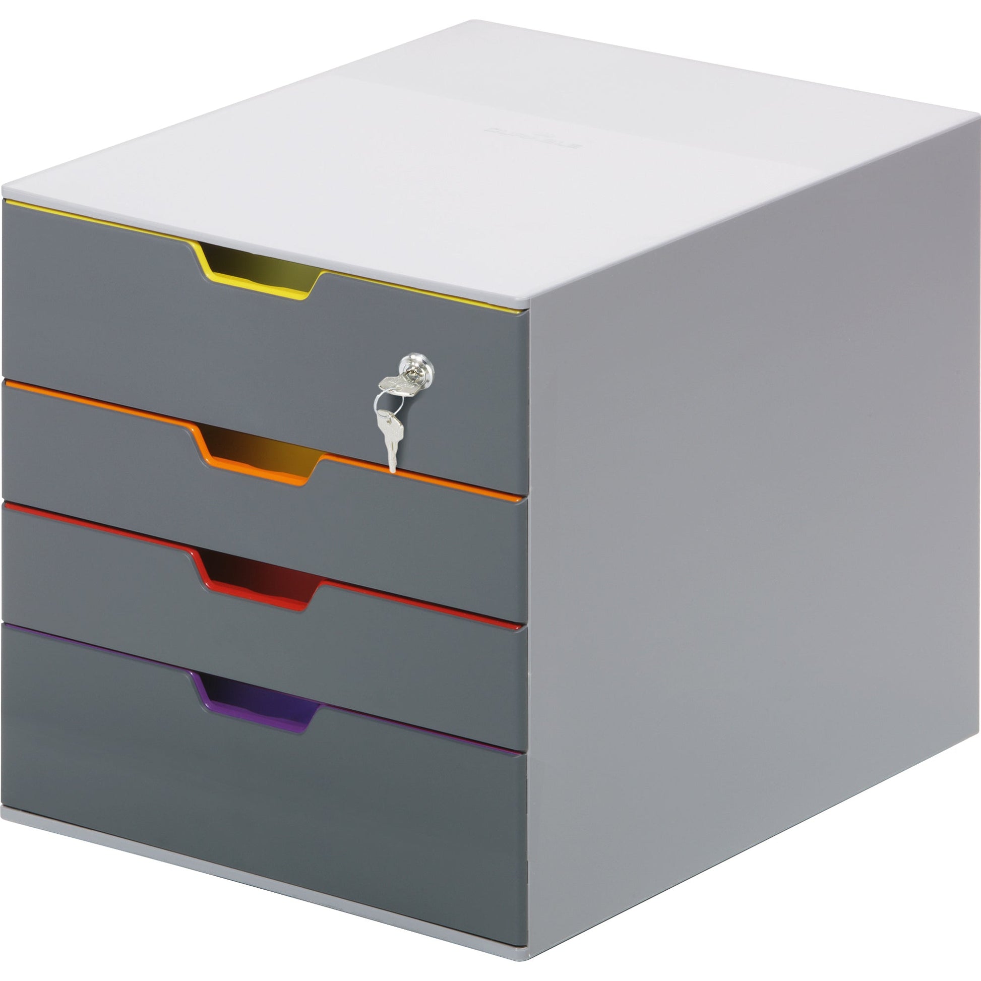 Bezeichnung: DURABLE Schubladenbox VARICOLOR® 4 Safe 4 Schubladen DIN A4, DIN C4, Folio, Letter ABS Kunststoff/Polystyrol Gehäusefarbe: grau Farbe der Schublade: anthrazit/mehrfarbig