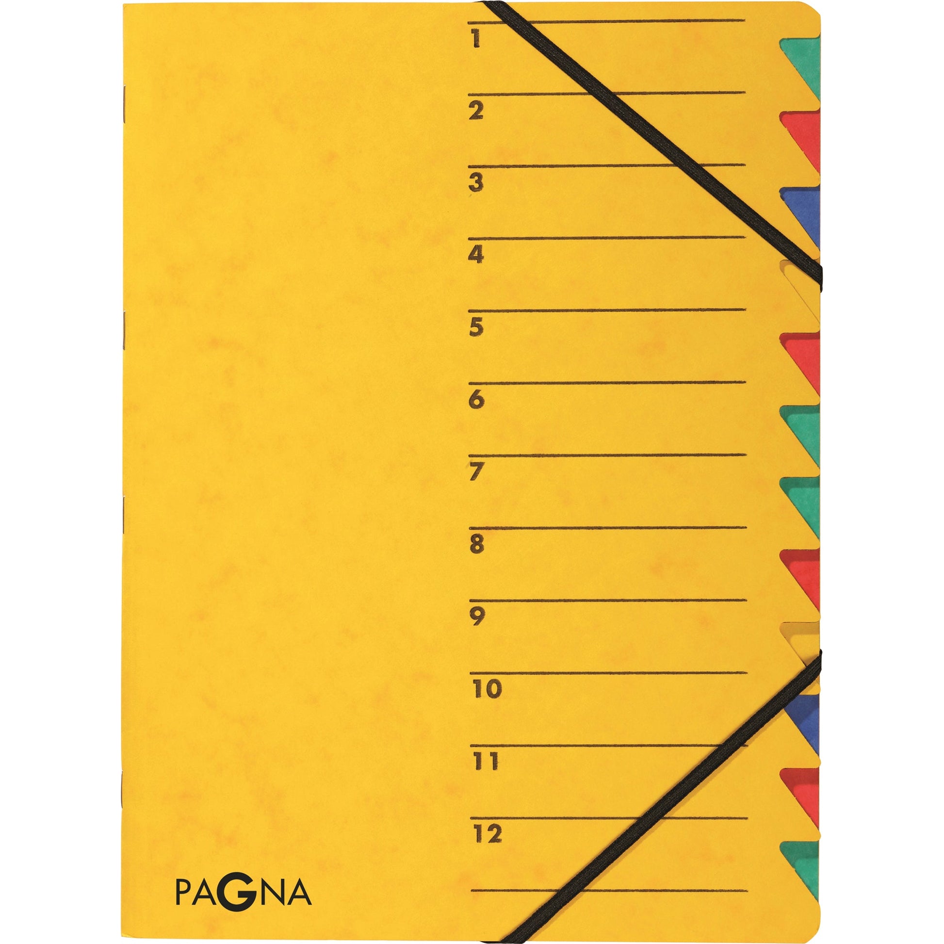 Bezeichnung: PAGNA Ordnungsmappe EASY DIN A4 225g/m² Pressspankarton Farbe: gelb Farbe des Fächerblocks: mehrfarbig 12 Fächer