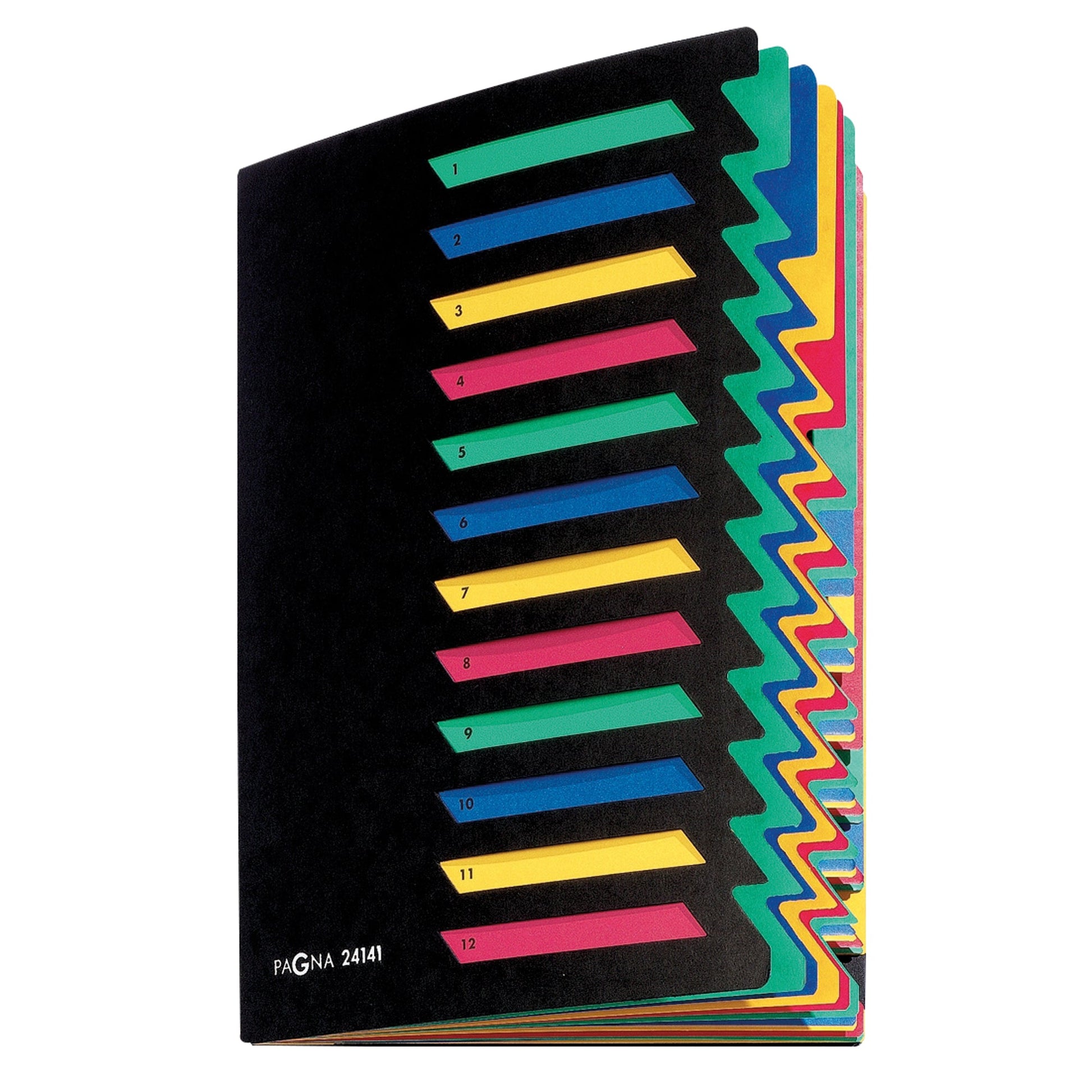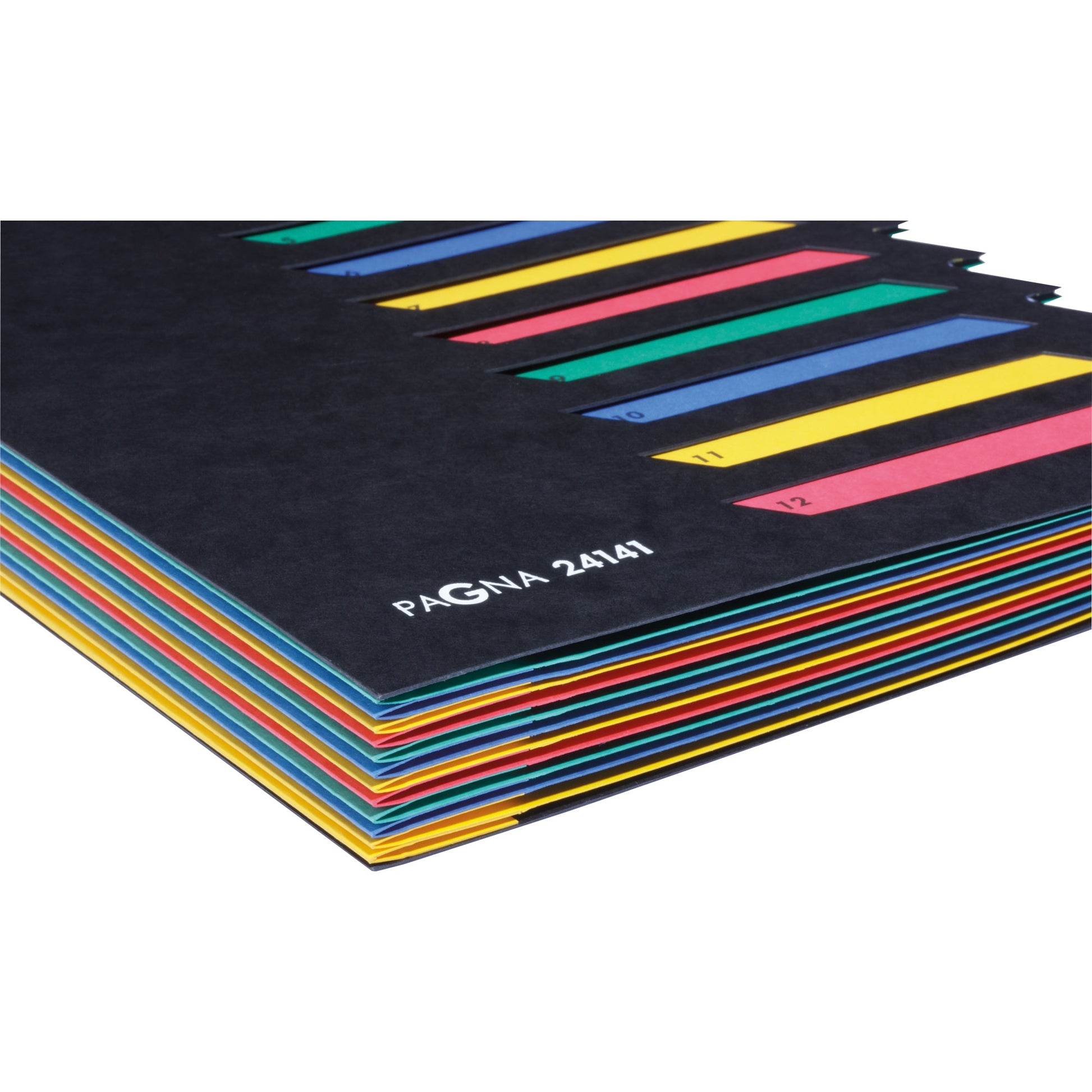 Bezeichnung: PAGNA Ordnungsmappe Deskorganizer Classic DIN A4 Pressspan Farbe: schwarz Farbe des Fächerblocks: mehrfarbig 12 Fächer