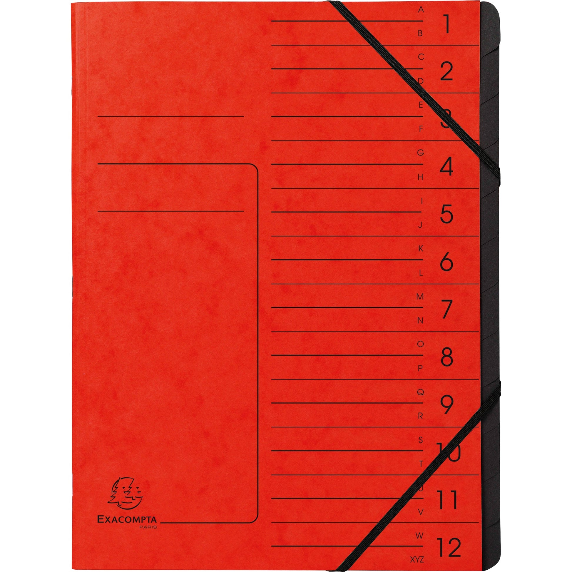 Bezeichnung: Exacompta Ordnungsmappe DIN A4 170g/m² Colorspankarton Farbe: rot Farbe des Fächerblocks: schwarz 12 Fächer
