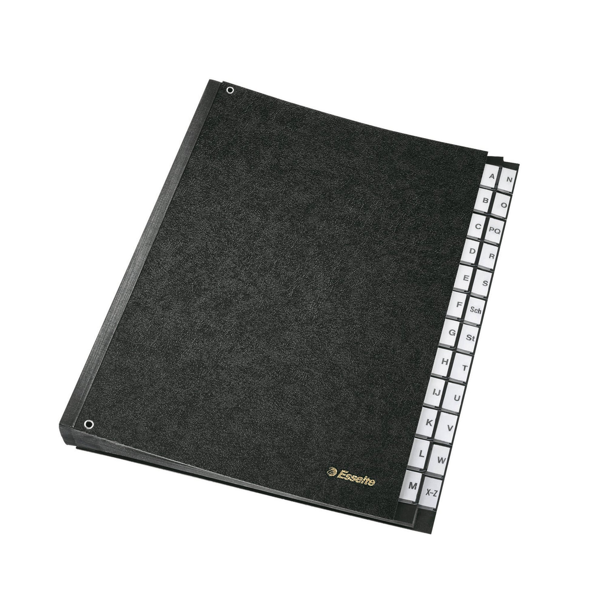 Bezeichnung: Esselte Pultordner DIN A4 A-Z Graupappe, Polypropylenfolie überzogen schwarz 24 Fächer