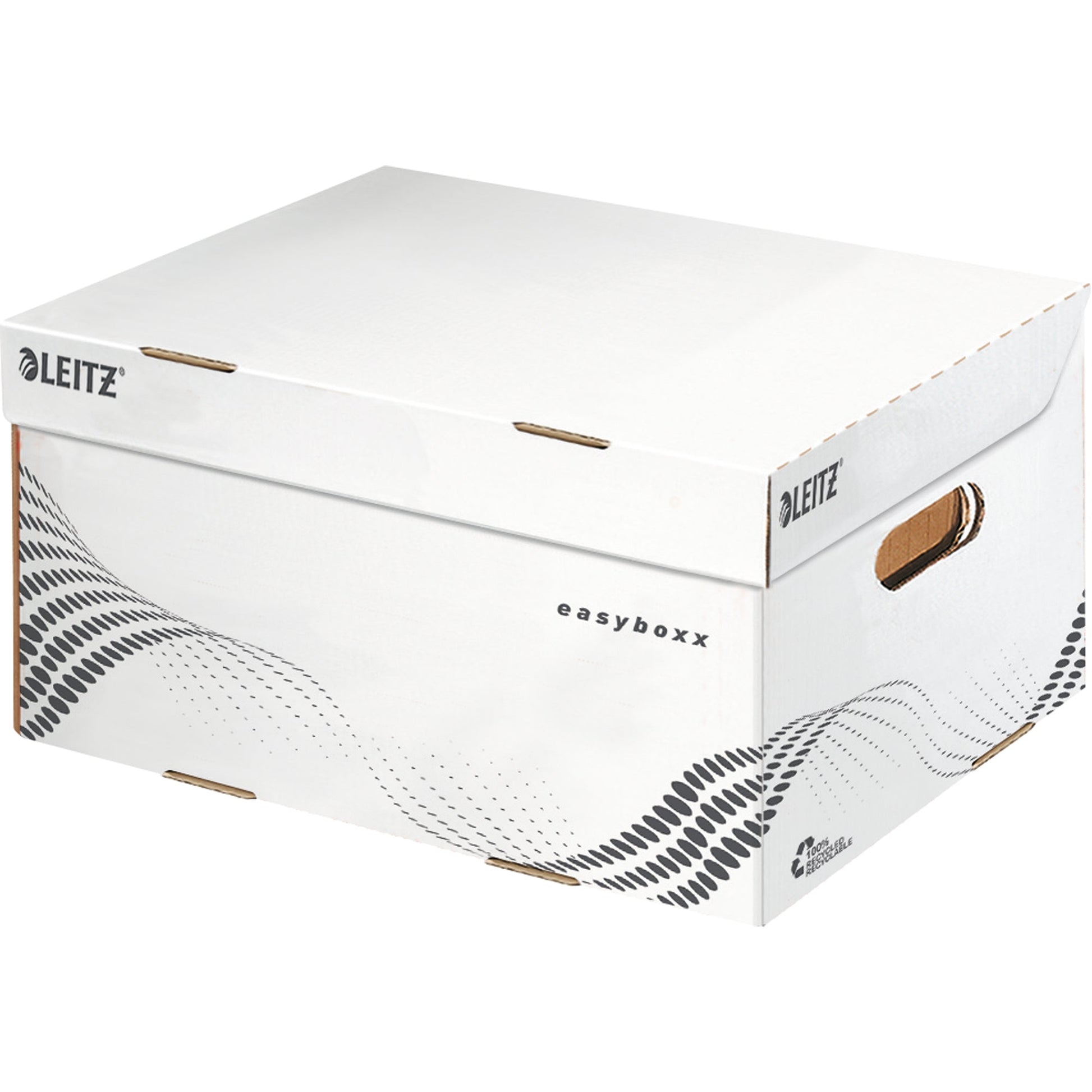 weißLeitz easyboxx ist die unentbehrliche Archivierungslösung - für jede Organisation oder Abteilung. Ideal um Papierdokumente nach den gesetzlichen Anforderungen zu archivieren. Der praktische Automatik-Aufbau spart Zeit und Mühe. Keine Anleitung nötig. Mit nur wenigen Handgriffen ist ihre Box fertig aufgebaut. Schnell aufklappbar. Bequem zu tragen. Für Dokumente, Ordner, Zeitschriften, Kataloge, Ablagebox für Ladegeräte, Kabel, Büromaterial und vieles mehr. Doppelte Seitenwände und Böden für maximale Stärke.