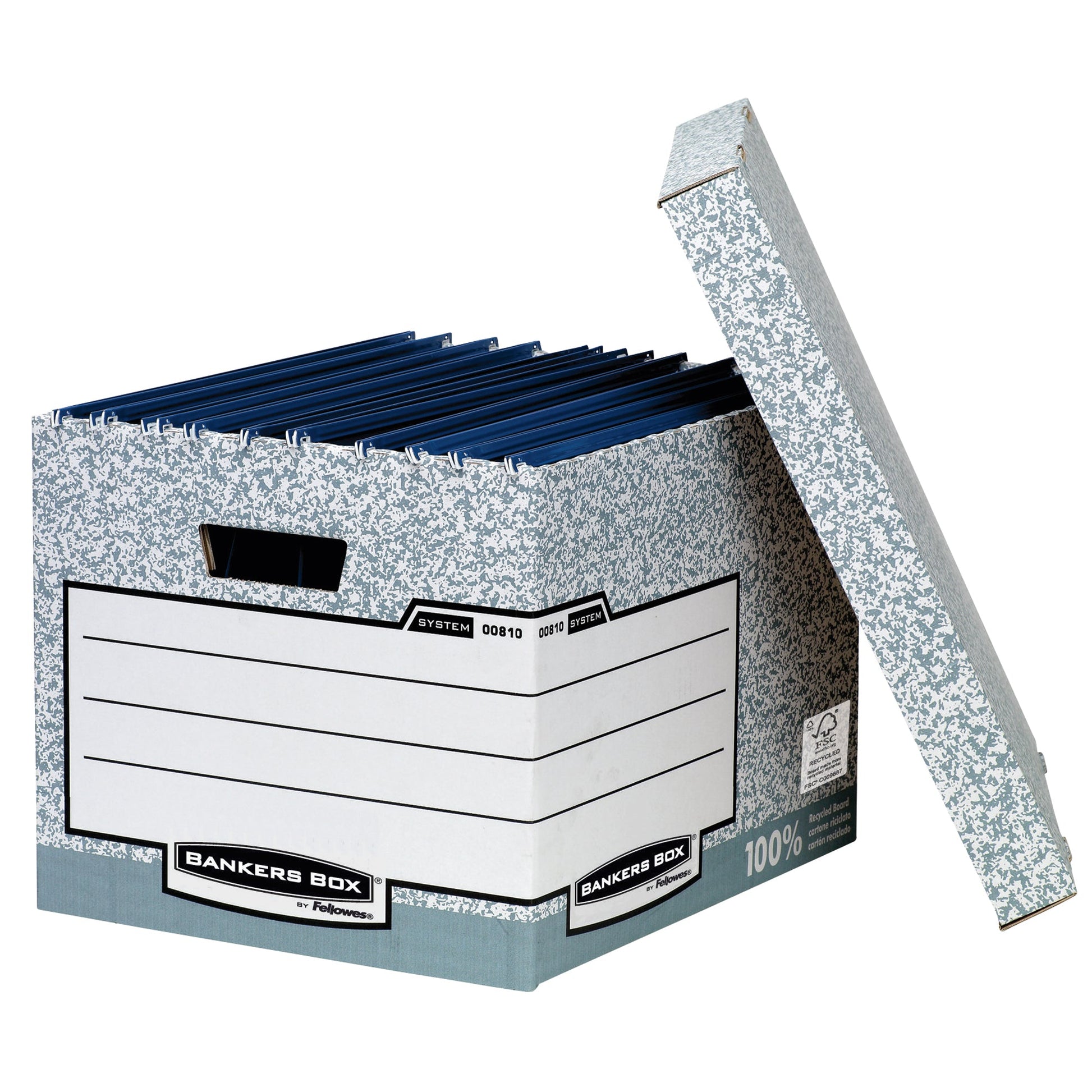 Bezeichnung: Bankers Box® Archivbox System 33,5 x 29,2 x 40,4 cm (B x H x T) DIN A4 mit Archivdruck Karton, 100 % recycelt grau/weiß