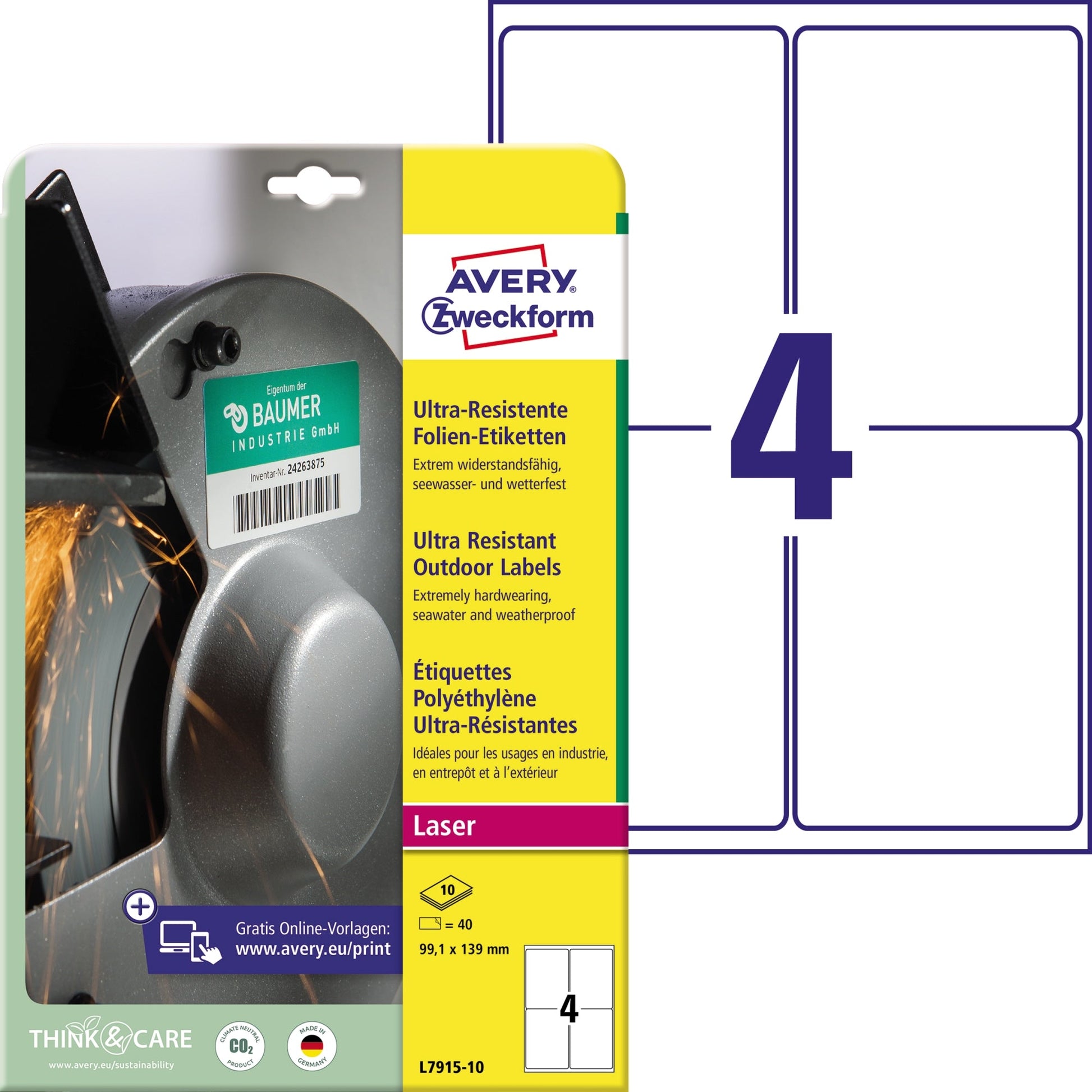 weißDurch die starke, permanente Haftung auch auf schwierigen Oberflächen eignen sich die ultra-resistenten Folien-Etiketten besonders zur Kennzeichnung in der Produktion und im Lager, zur Eigentumskennzeichnung, Beschriftung von Containern oder zur Beschilderung. Ideen drucken - einfach & professionell: mit Etiketten von Avery Zweckform können Sie den kostenlosen Online Etiketten-Designer unter www.avery.eu/print nutzen. Gestalten Sie Ihr Etikett mit der Software komplett selbst, verwenden Sie eine der Design-Vorlagen zu zahlreichen Themen, die Sie individuell anpassen können oder laden Sie Ihr fertiges Design hoch und drucken anschließend standgenau aus. So schnell und einfach sorgen Sie für einen professionellen Auftritt.