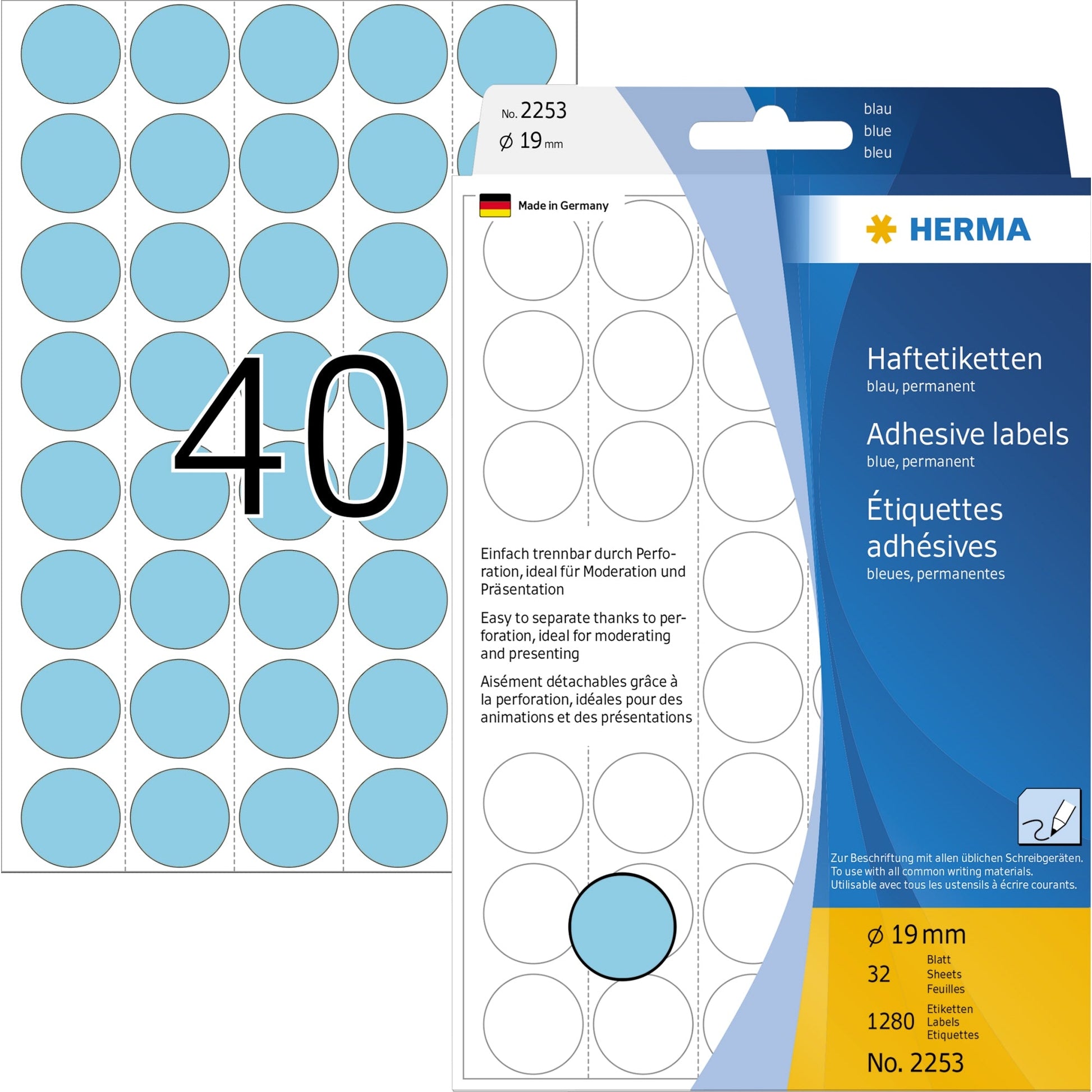 Bezeichnung: HERMA Markierungspunkt 19mm Papier blau 1.280 Etik./Pack.